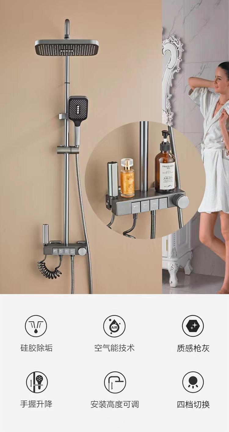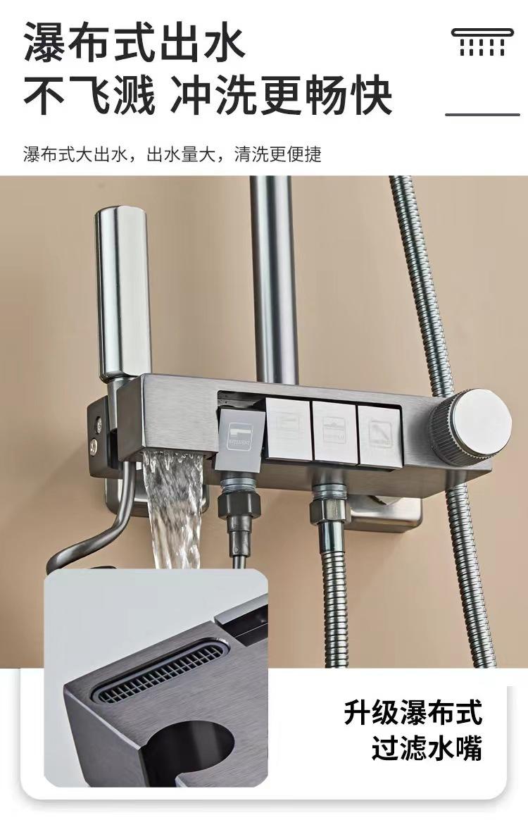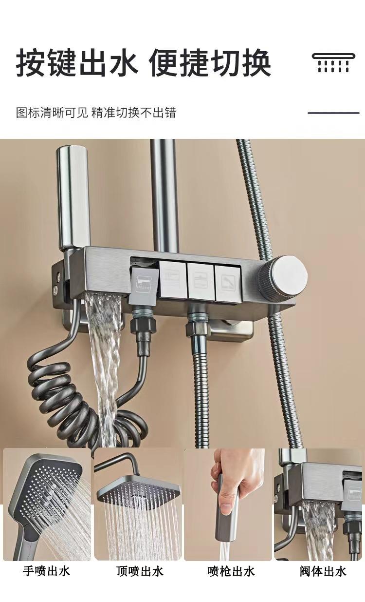 Set de Ducha de Aluminio Espacial para Baño en Casa Cabezal de Ducha Moderno Control de Temperatura Cuadrado Pantalla de Ducha Termostática