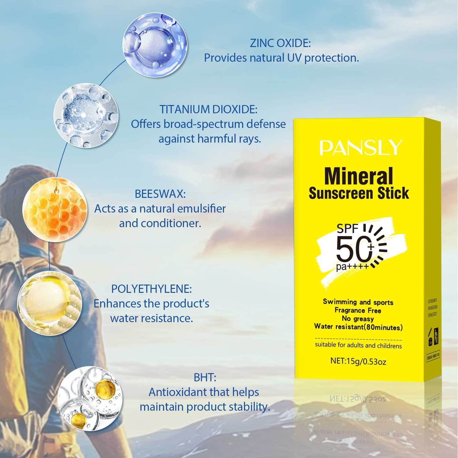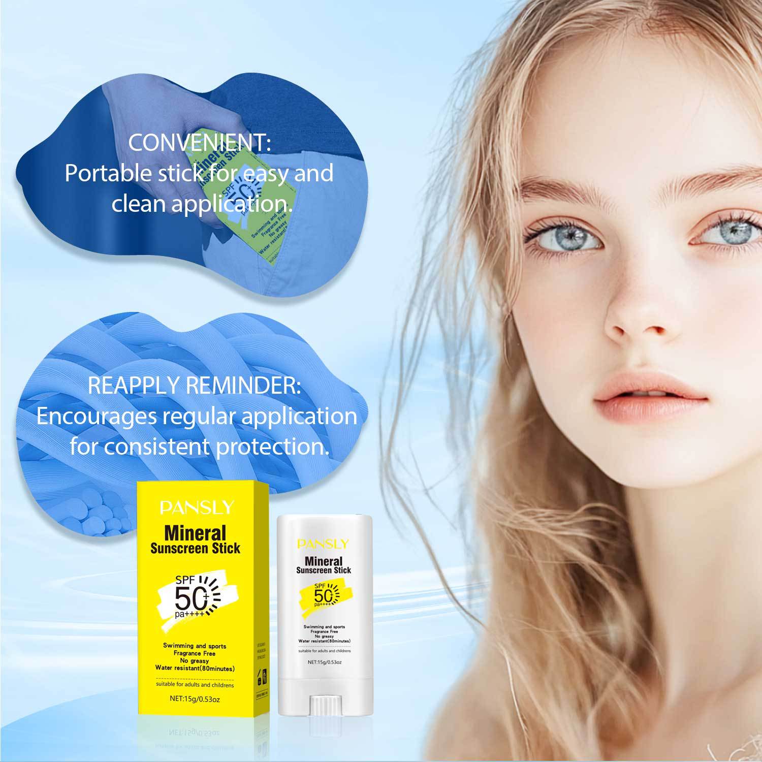Transfronterizo en stock PANSLY protector solar en barra físico anti-brillo 15g fresco y no grasoso