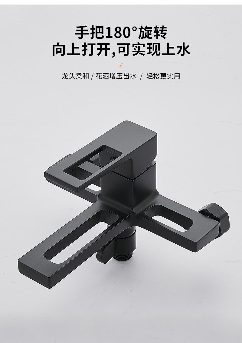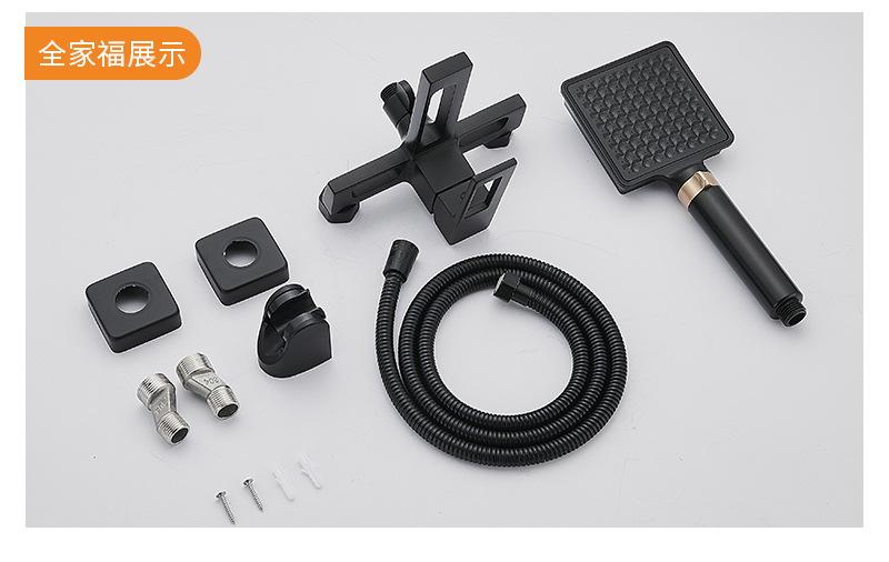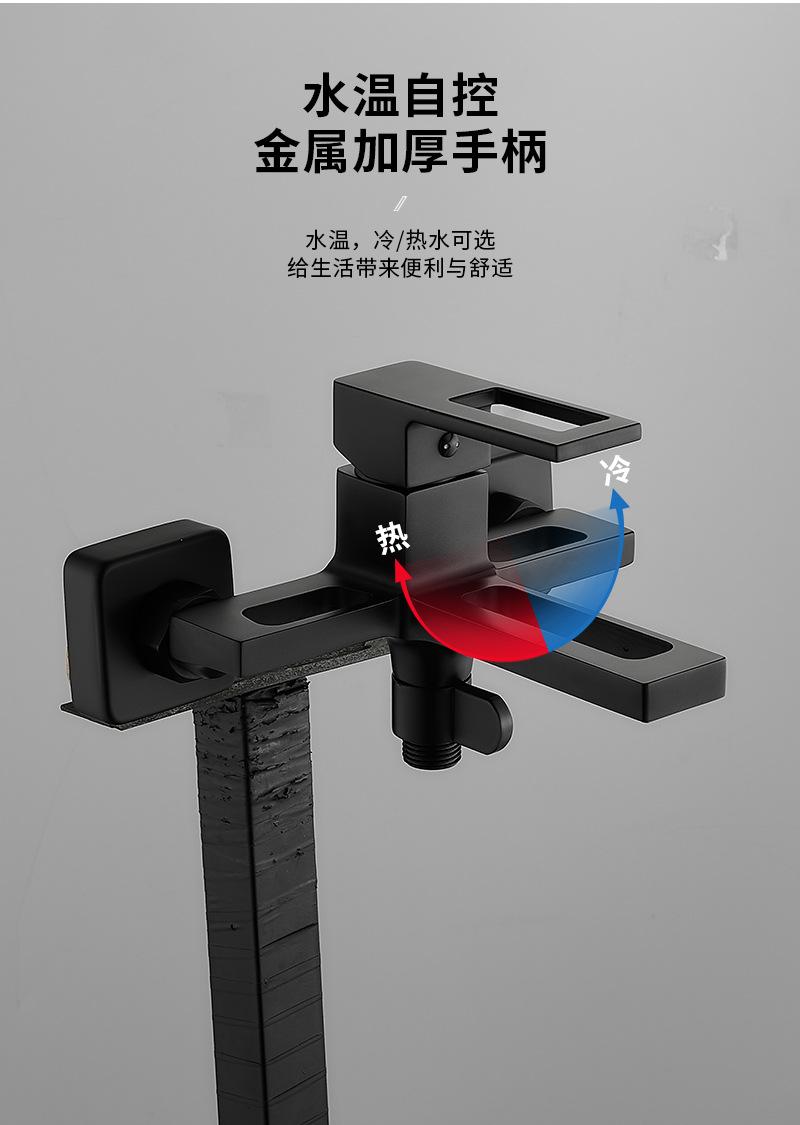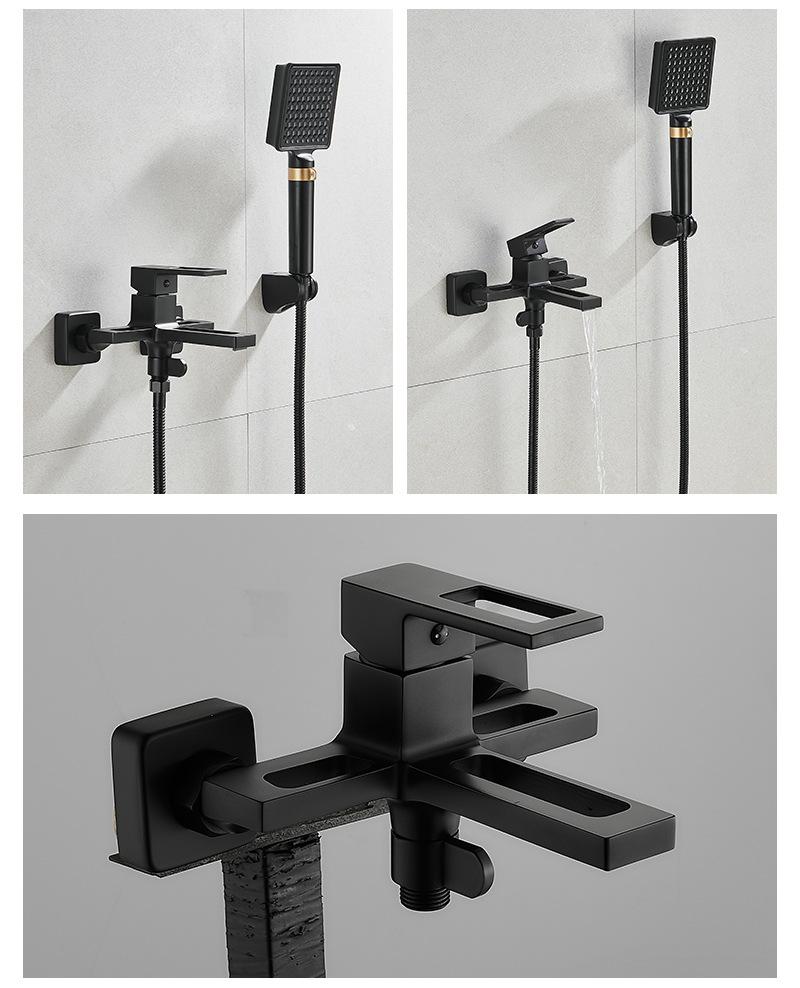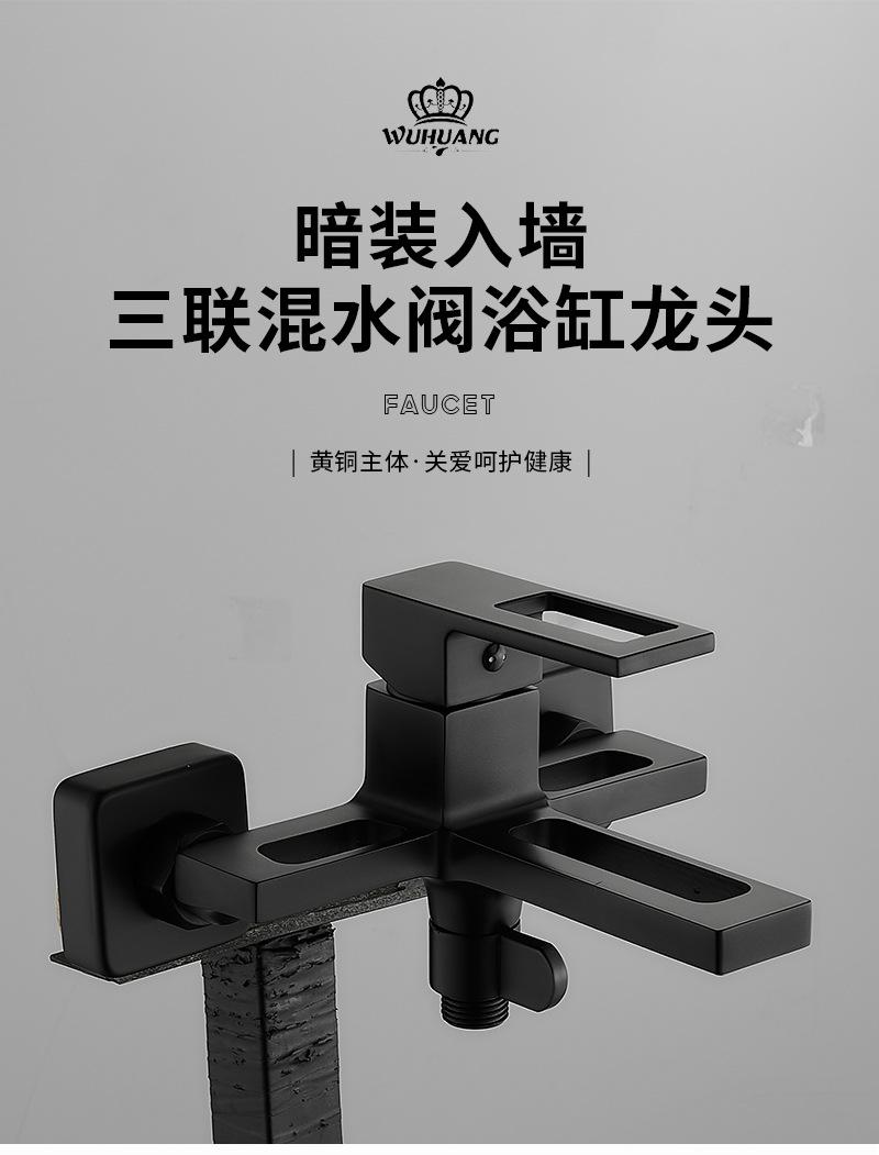 Copper body hot and cold bathroom black concealed installation into the wall triple mixing valve bathtub faucet