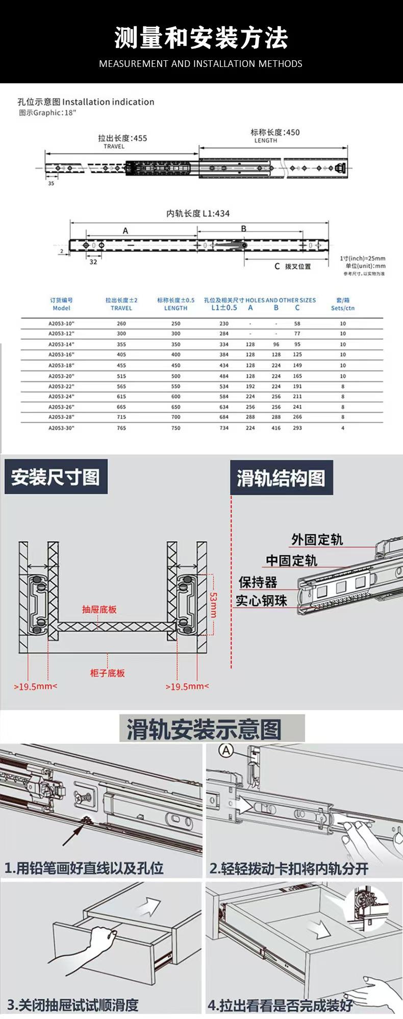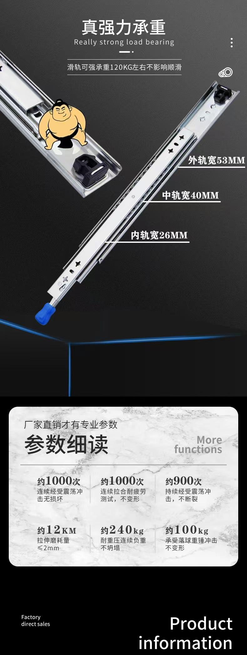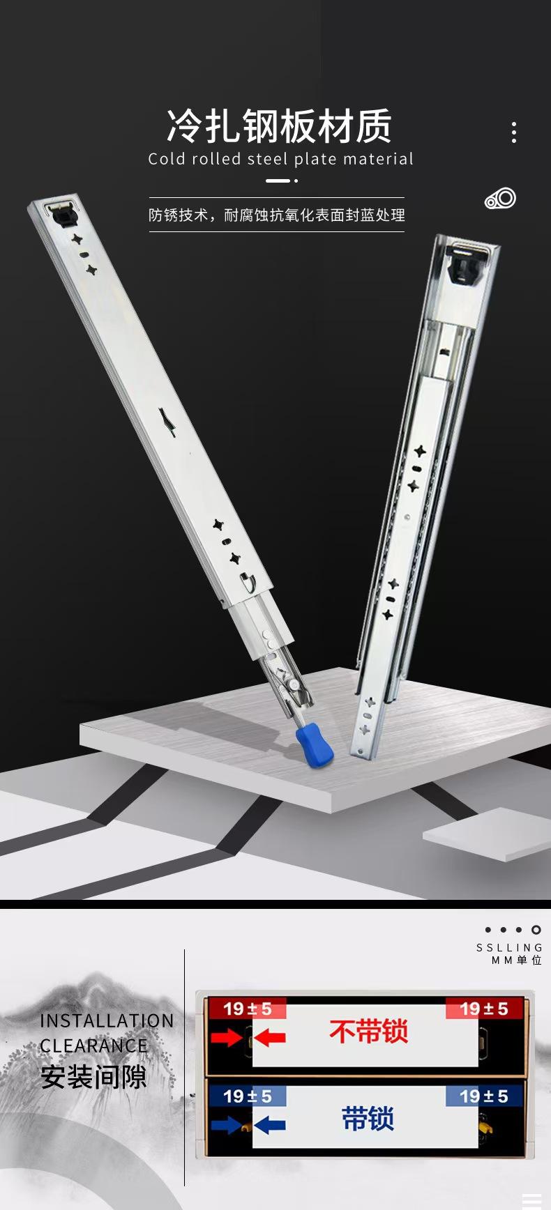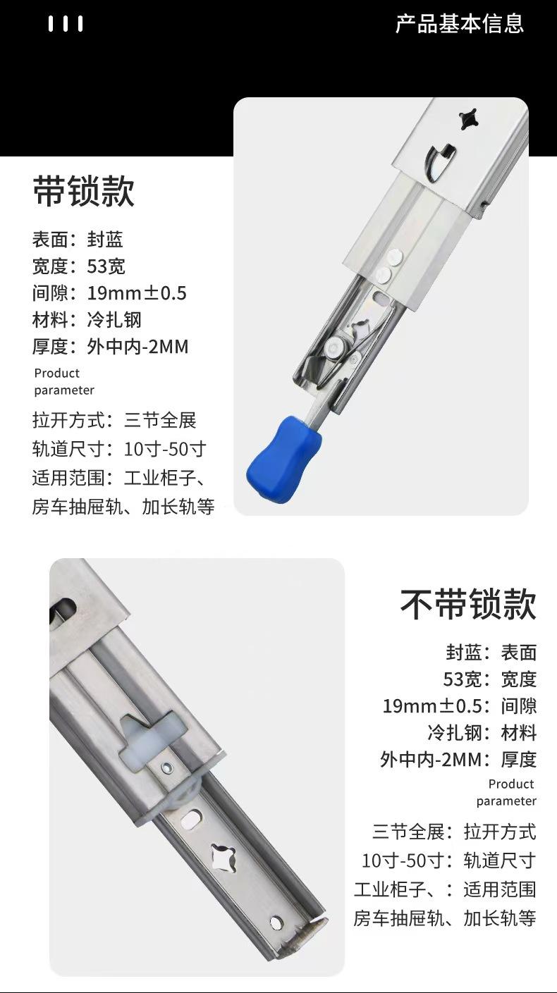 53 riel deslizante de alta resistencia de ancho riel deslizante para cajón riel guía industrial alargado y engrosado rodamiento de carga caravana con bloqueo riel deslizante