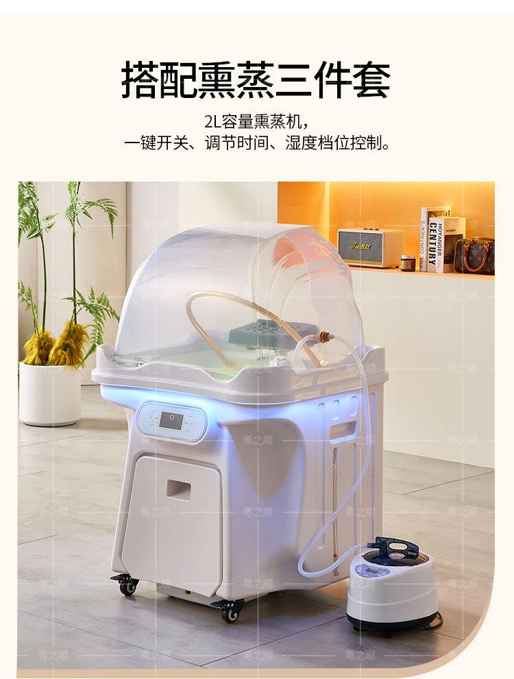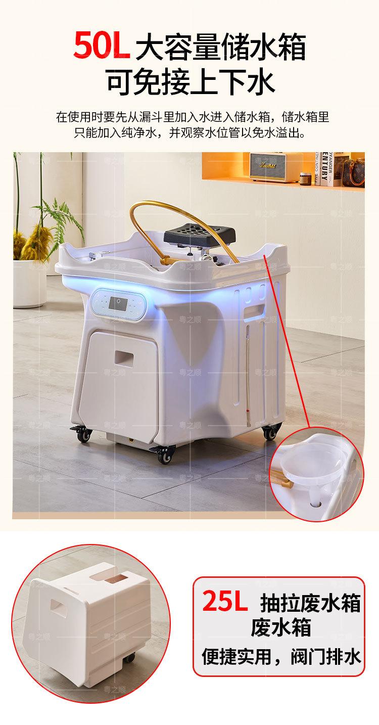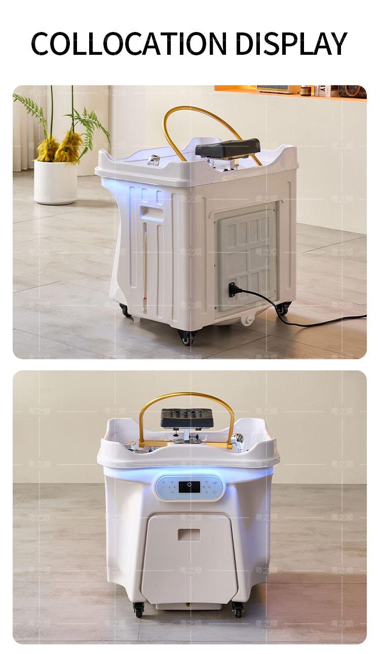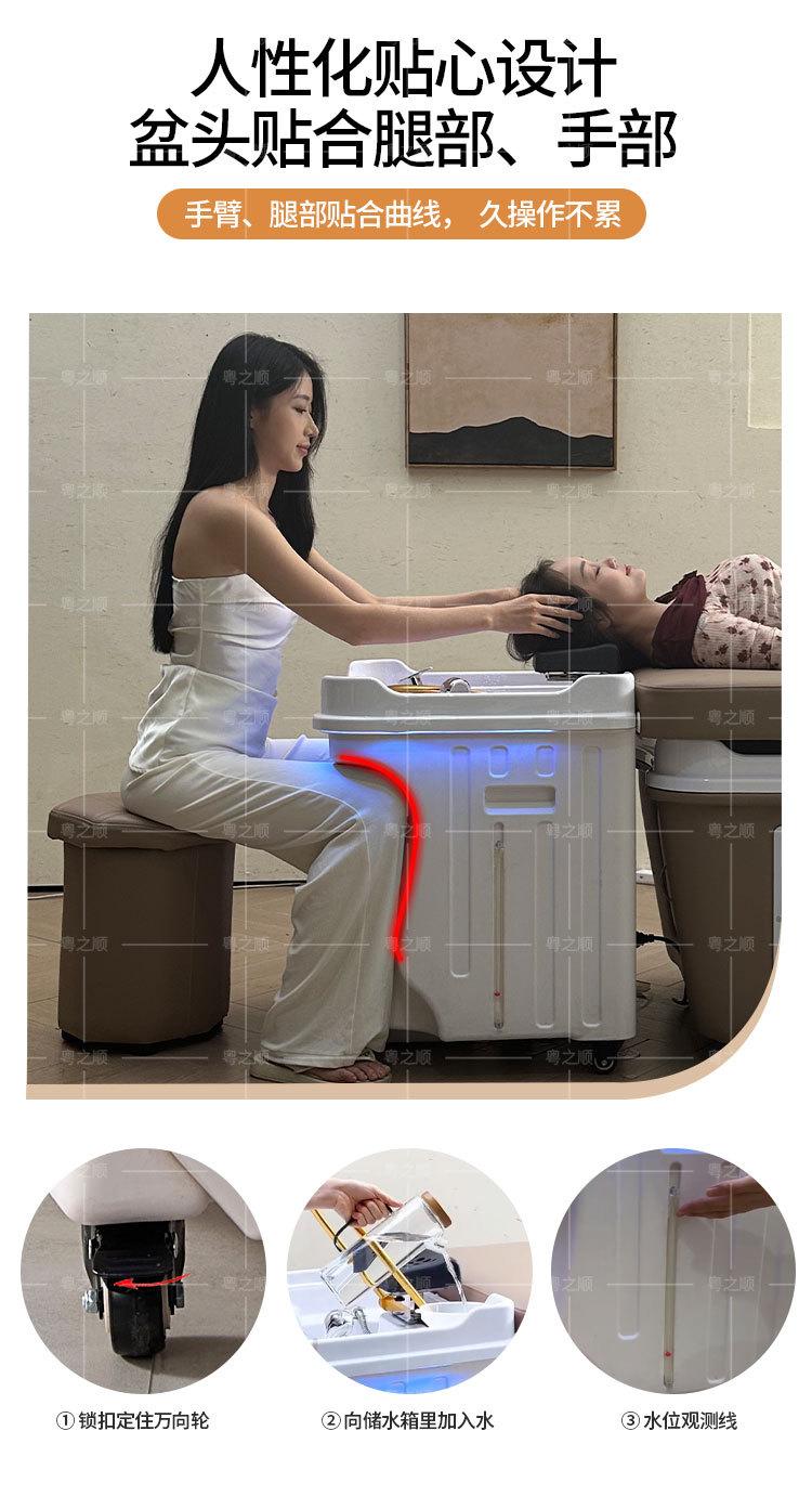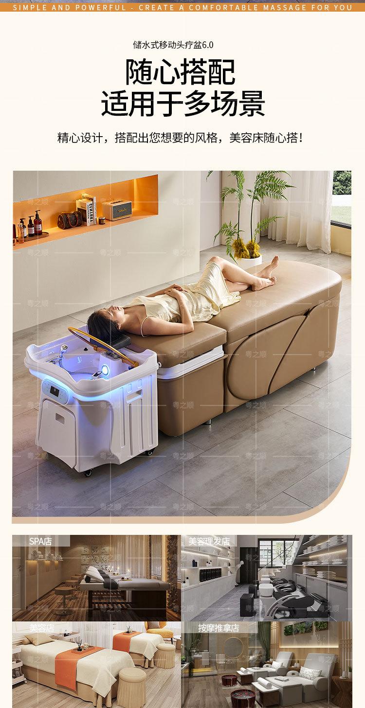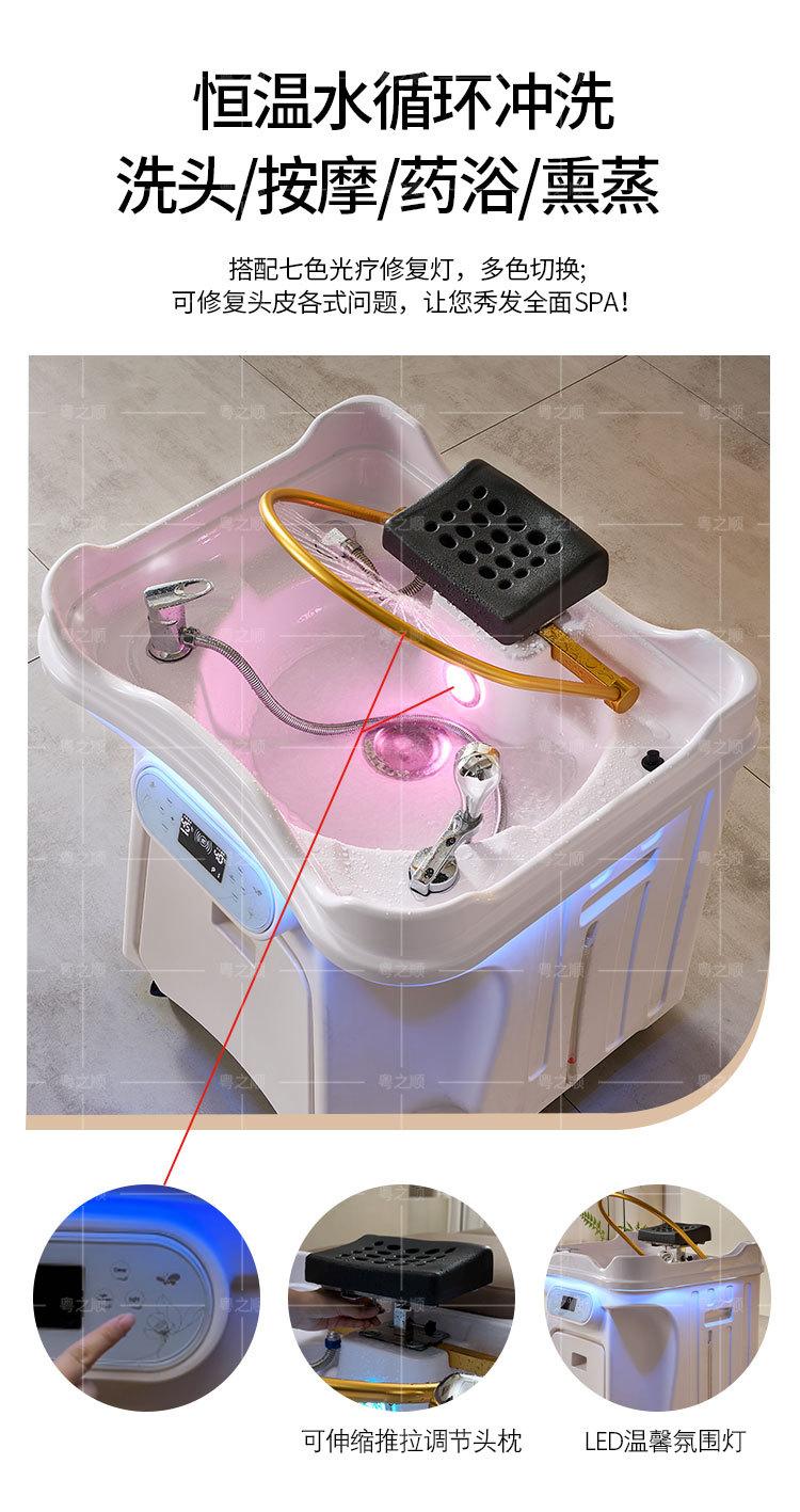 Cama de champú para terapia de cabeza especial para salón de belleza, depilación de orejas móvil, sala de cuidado del cabello, aparato de terapia de cabeza con fumigación y circulación de agua.