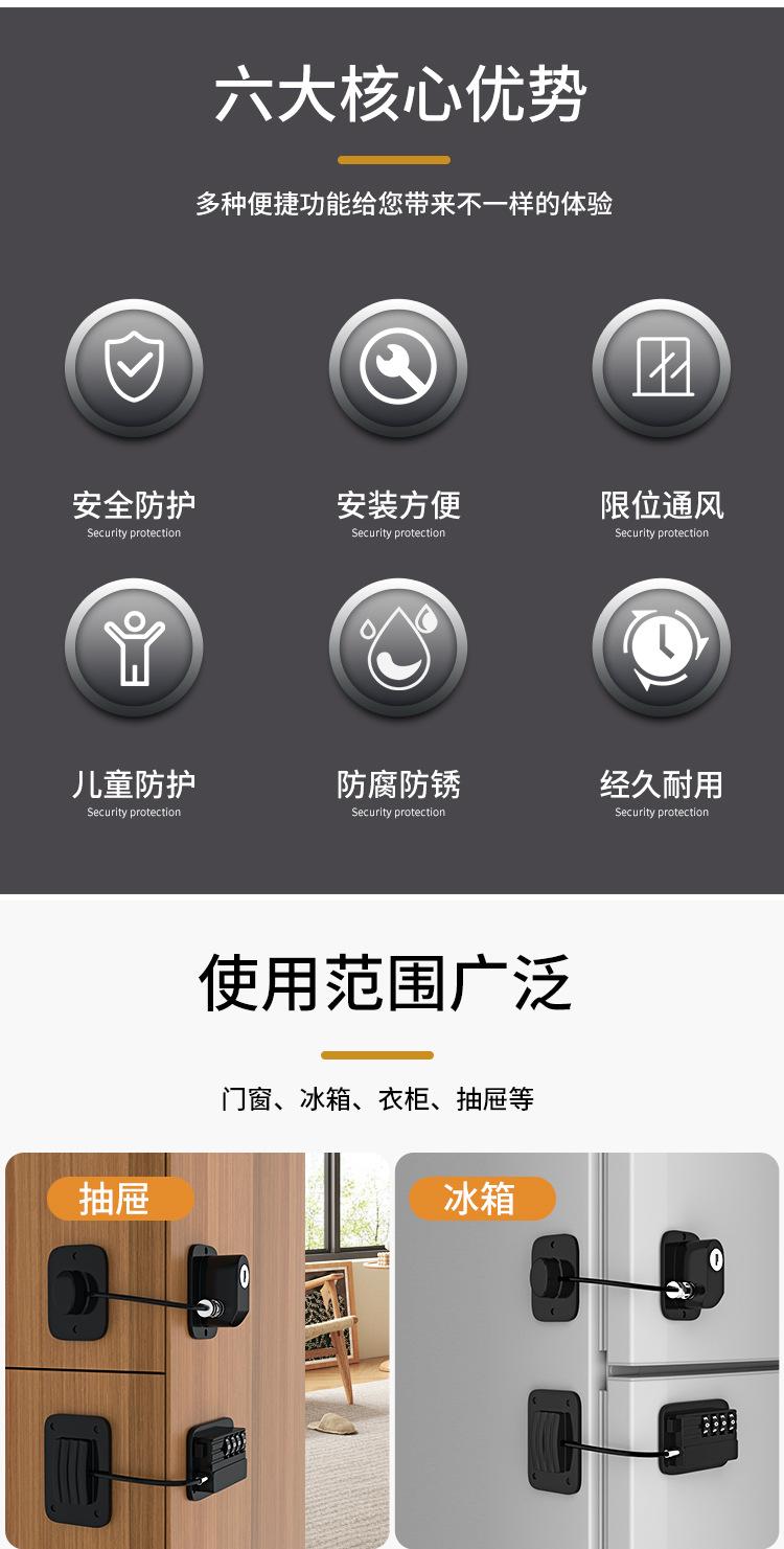 Cerradura de combinación sin perforaciones para refrigerador, cerradura de ventana, cerradura de cajón, cerradura de seguridad para niños, cerradura de puerta de gabinete, hebilla anti-pellizcos para bebés, puerta abierta con la mano