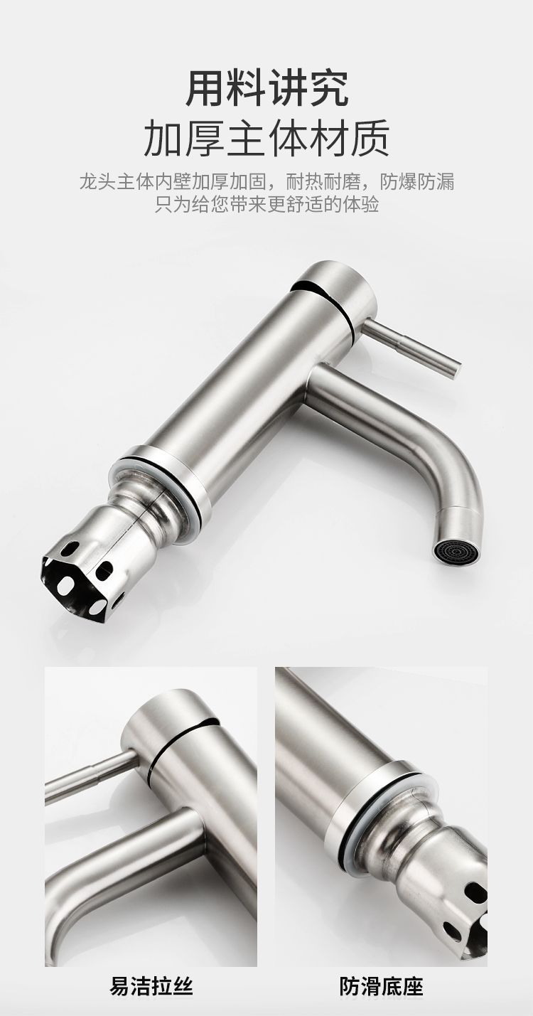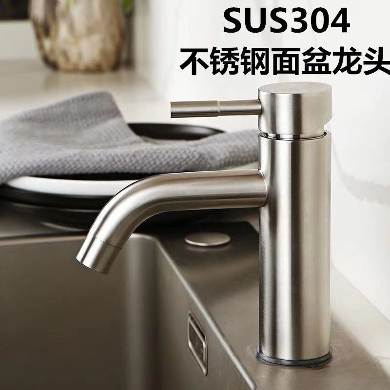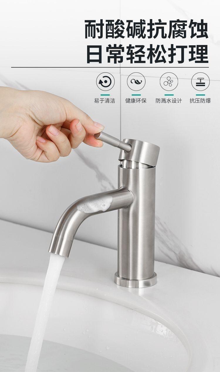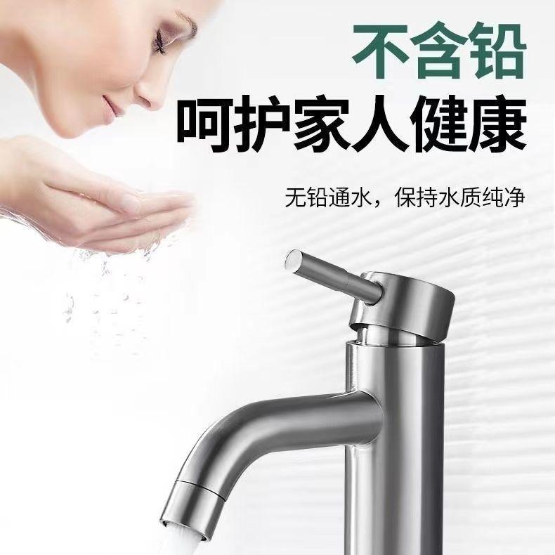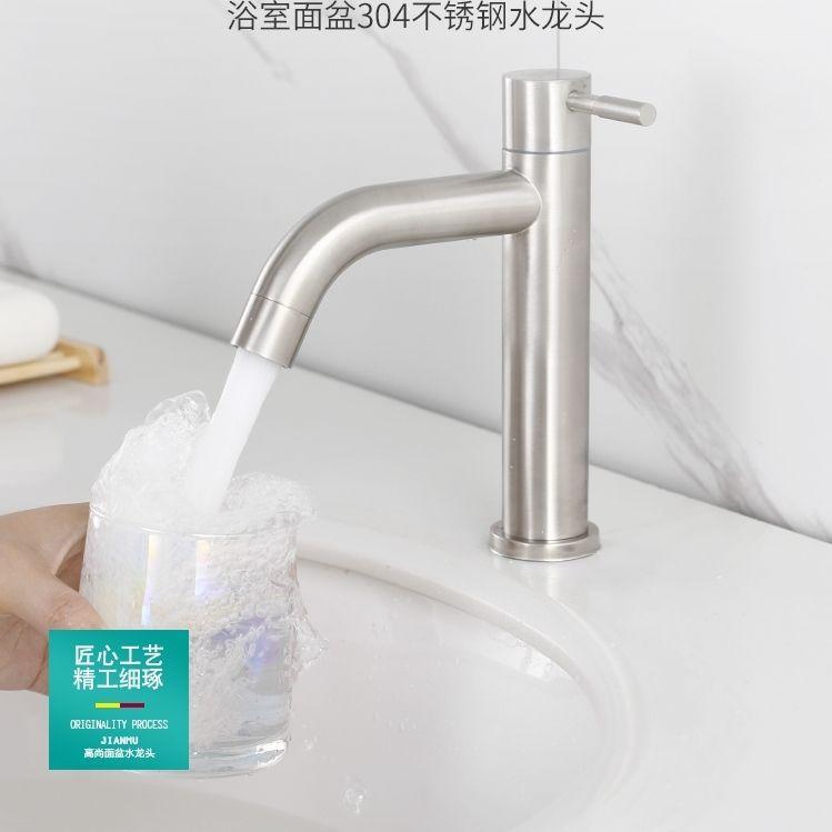Grifo de lavabo de acero inoxidable 304 de un solo frío elevado para lavabo de manos de baño, grifo de lavabo frío y caliente para el hogar