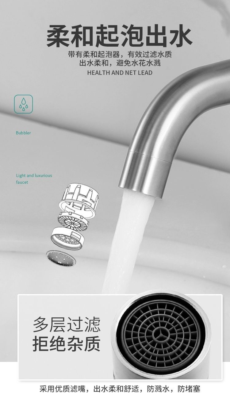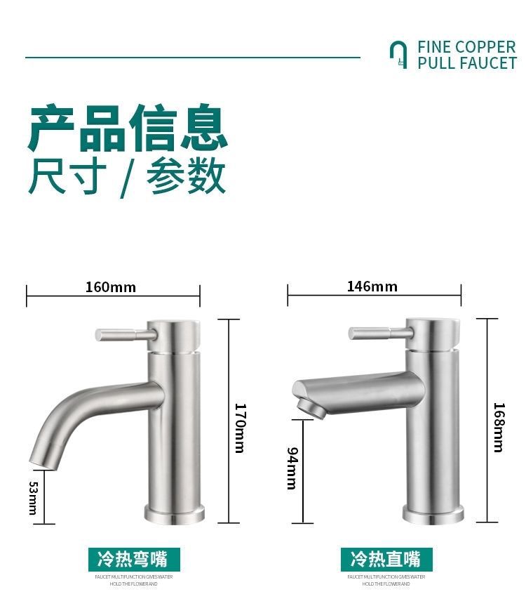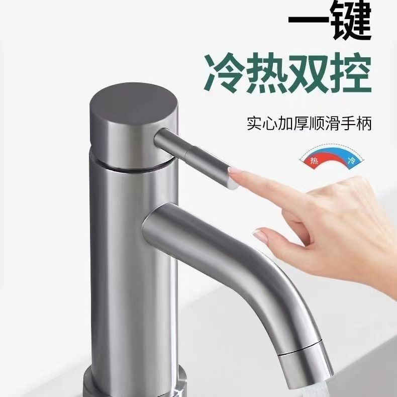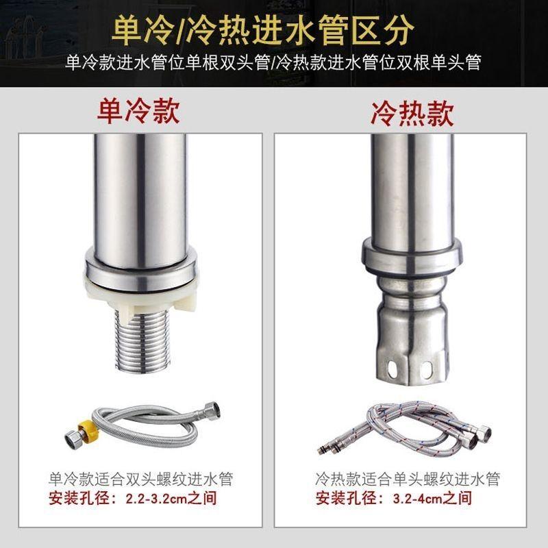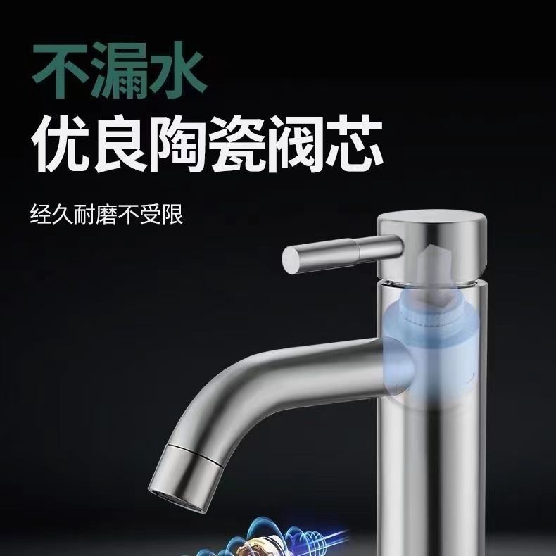Grifo de lavabo de acero inoxidable 304 de un solo frío elevado para lavabo de manos de baño, grifo de lavabo frío y caliente para el hogar