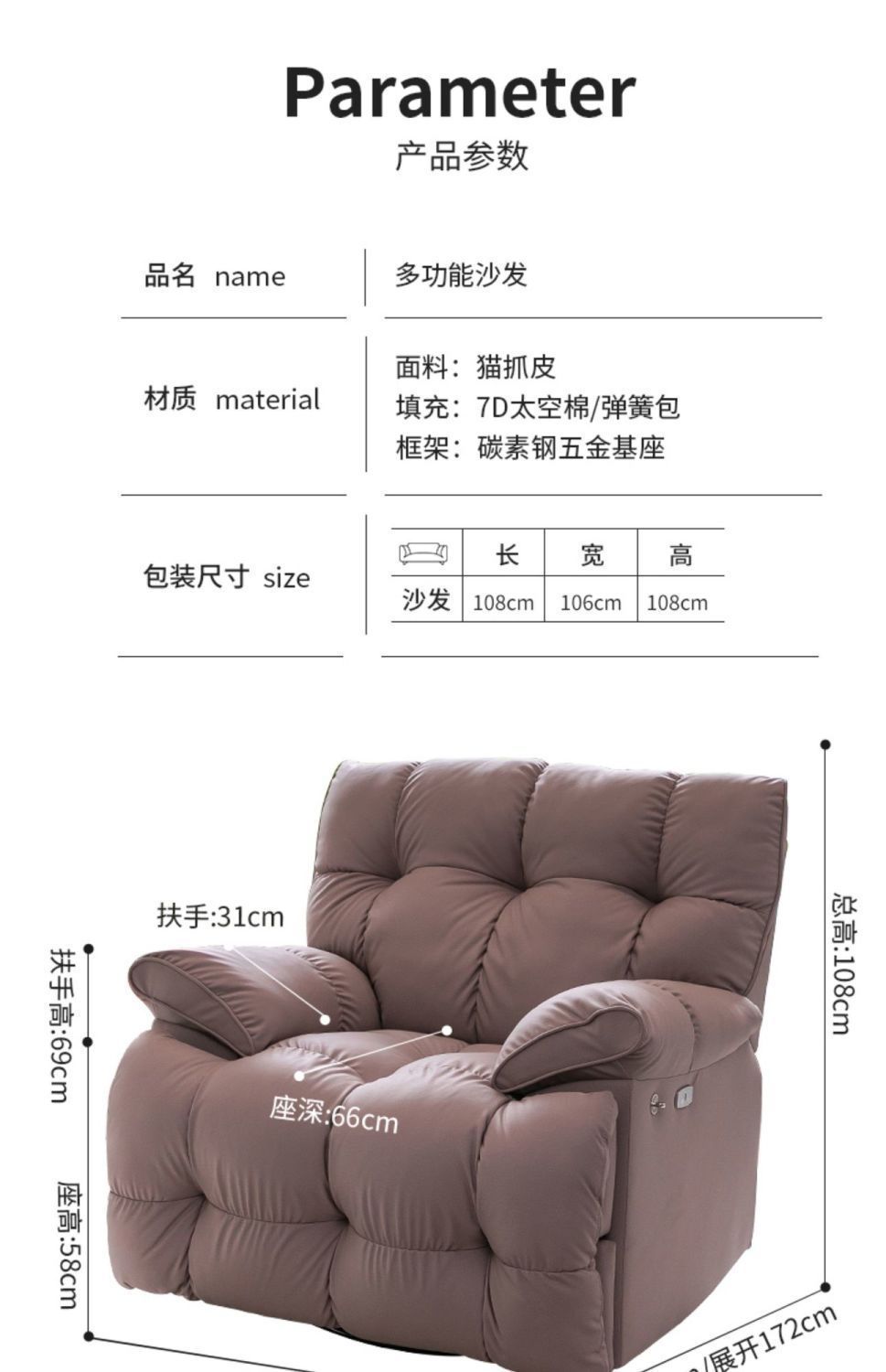 Sofá Nube Perezosa Espacial de Primera Clase Cabina Sala de Estar Ocio Reclinable Mecedora Eléctrica Multifuncional Individual Moderno Lujo Ligero