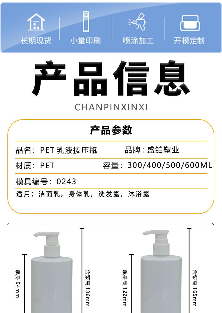 Botella Hombro Plano Loción para Mascotas 300Ml400Ml500Ml600Ml Botella Vacía Champú y Gel de Ducha Botella Loción Corporal