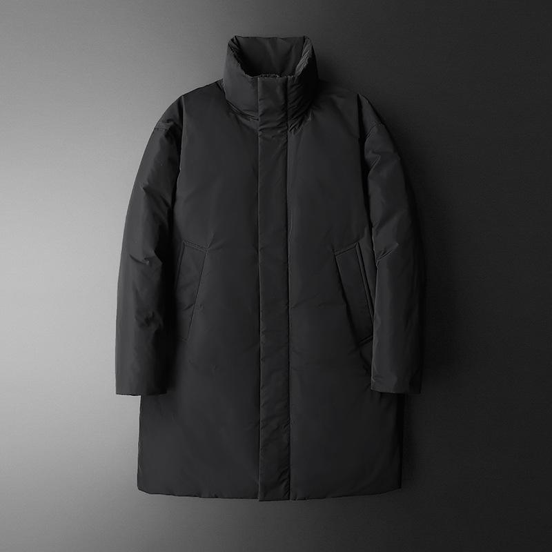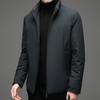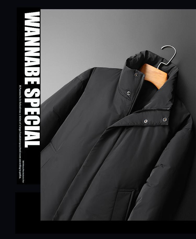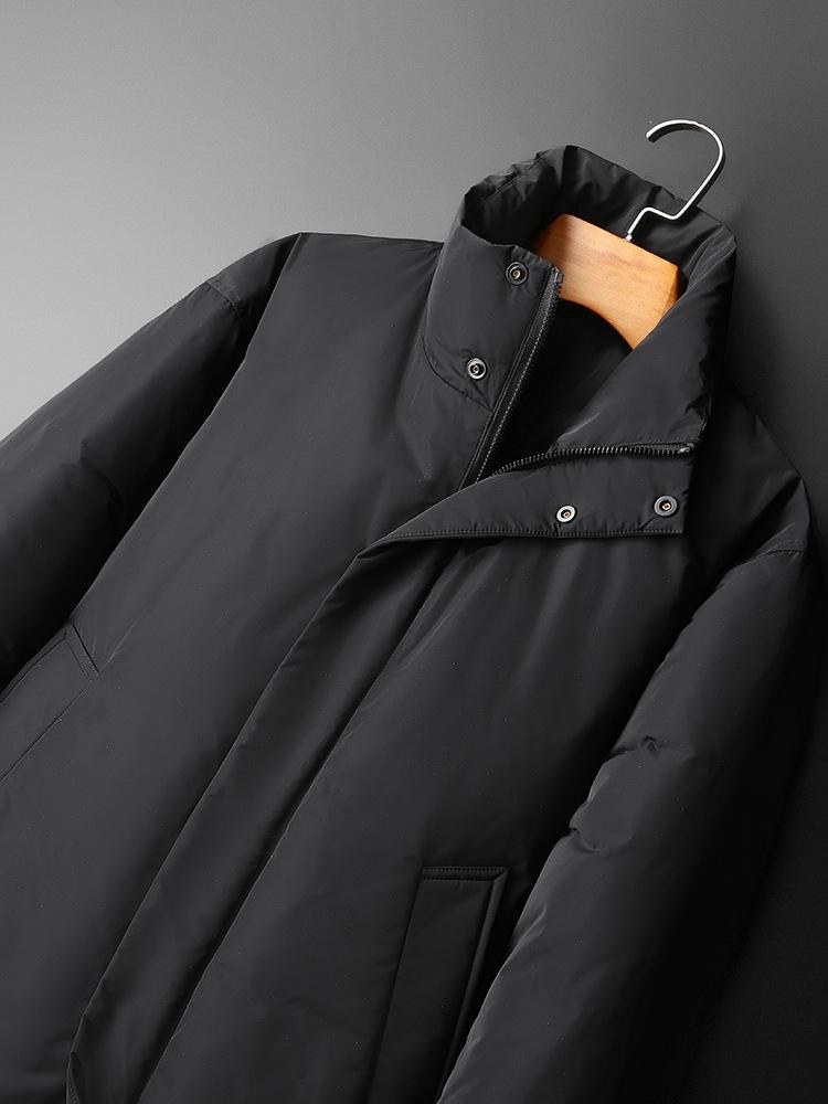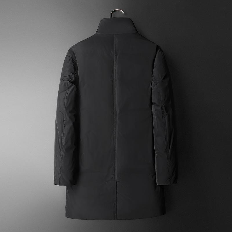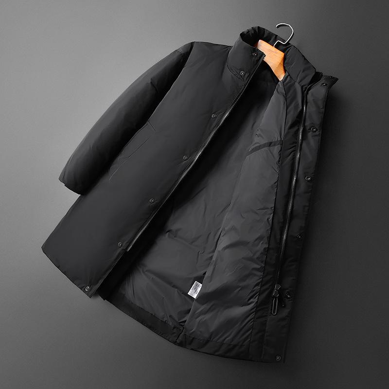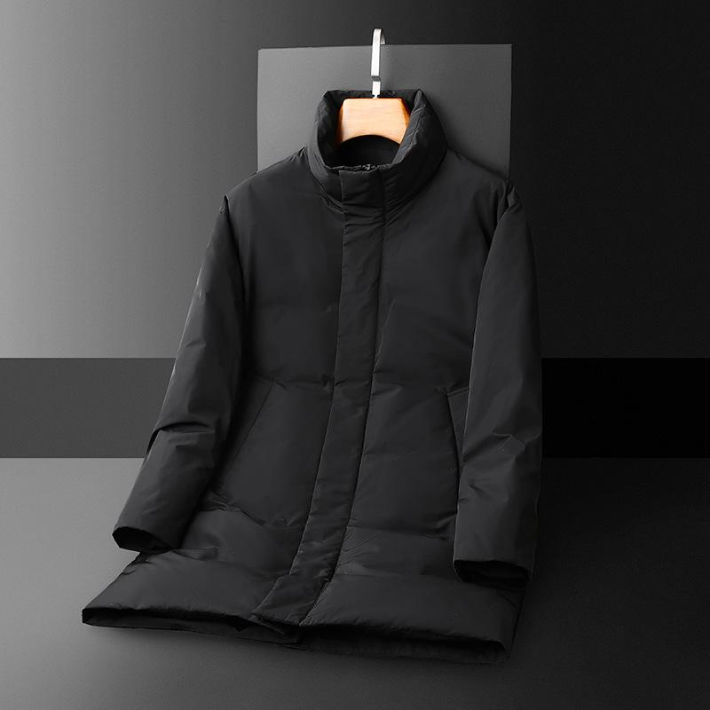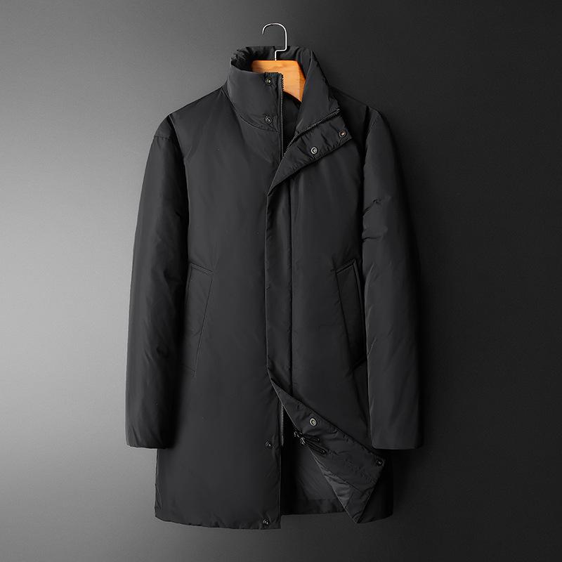 Chaqueta de plumón de invierno estilo europeo con cuello alto, casual de negocios, plumón de pato blanco, longitud media para hombre