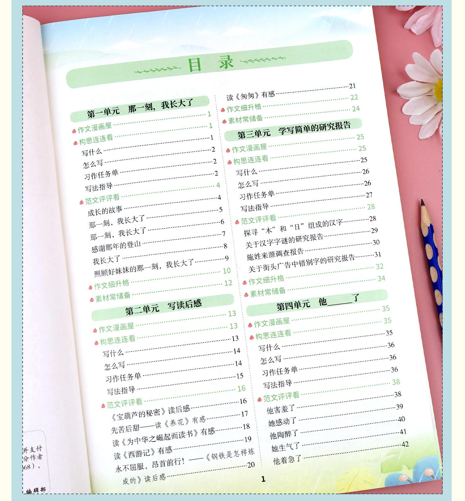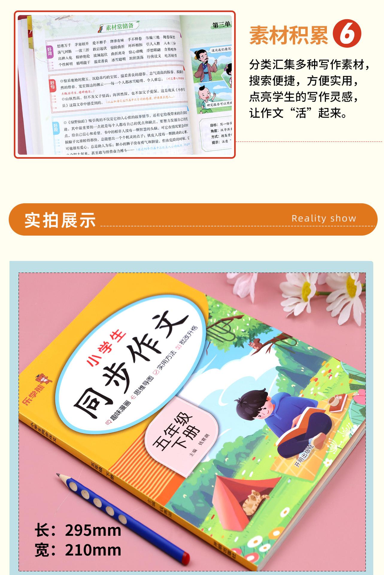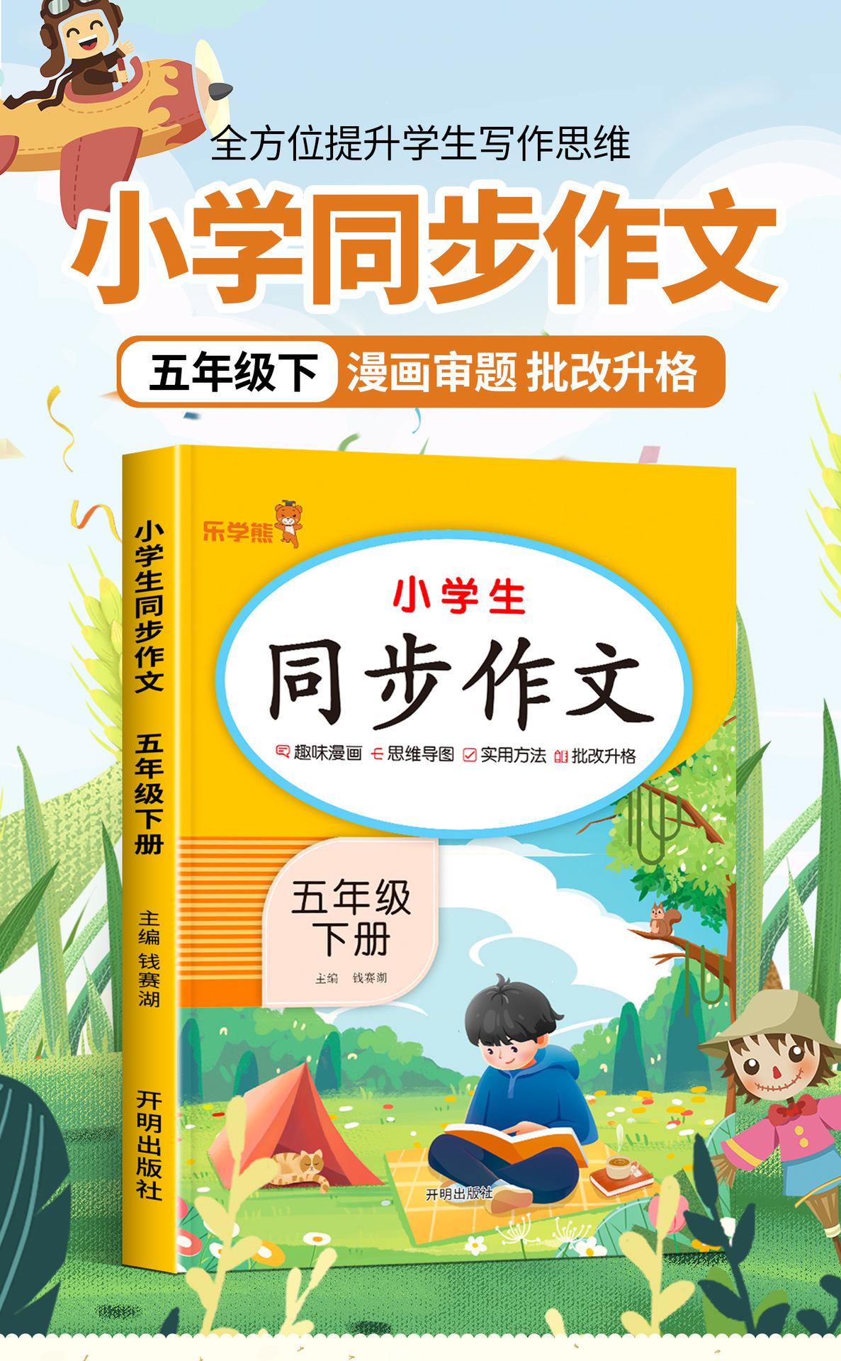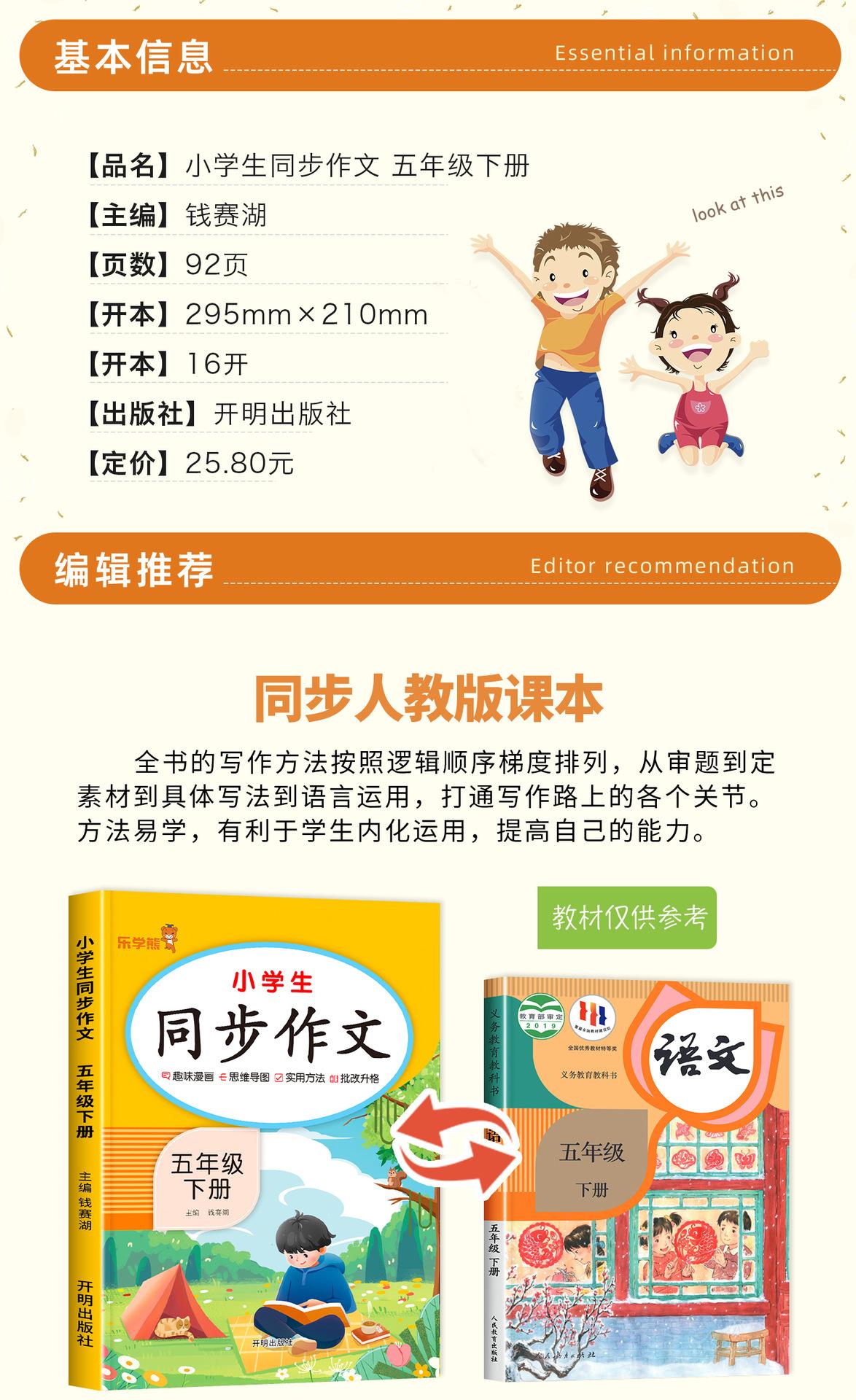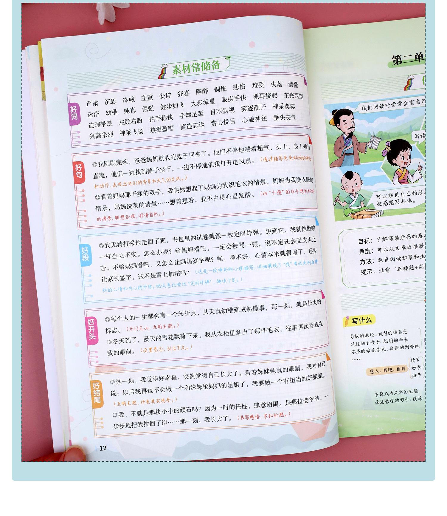 El segundo volumen de la edición de educación del pueblo chino de composición sincrónica de grado tres, cuatro, cinco y seis para estudiantes de primaria, libro de composición, habilidades de escritura.