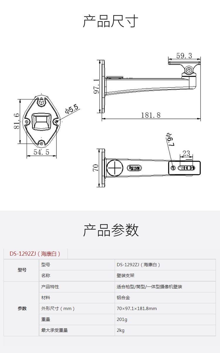 Soporte de pared para cámara de vigilancia Hikvision Haikang DS-1292ZJ de aleación de aluminio blanco. Soporte de vigilancia para el hogar.
