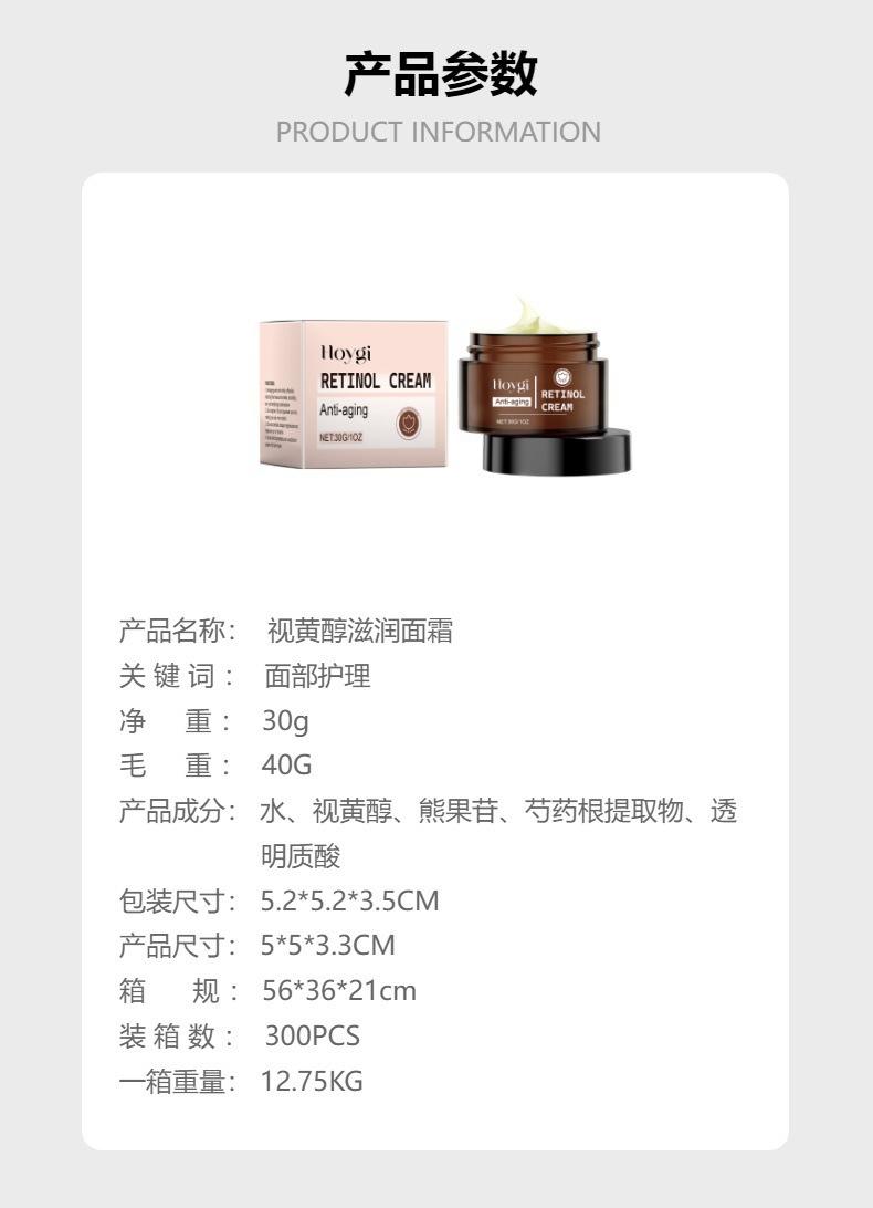 Crema hidratante con retinol HOYGI, crema hidratante suave, hidratante y suave para el cuidado de la piel.