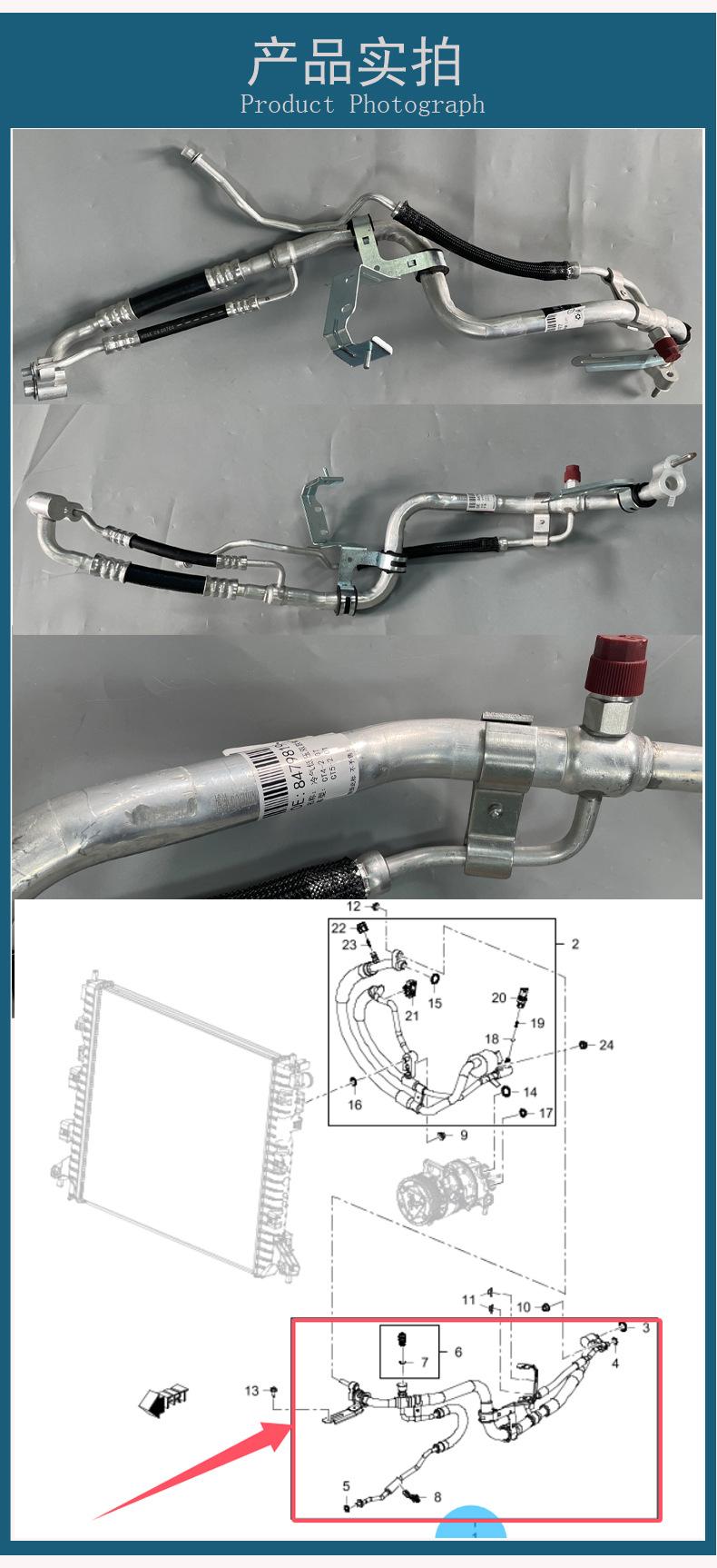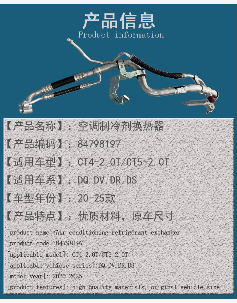 Adecuado para el intercambiador de calor de refrigerante de aire acondicionado de automóvil Cadillac CT4CT5-2.0T, tubería de aire frío de alta presión y baja presión.