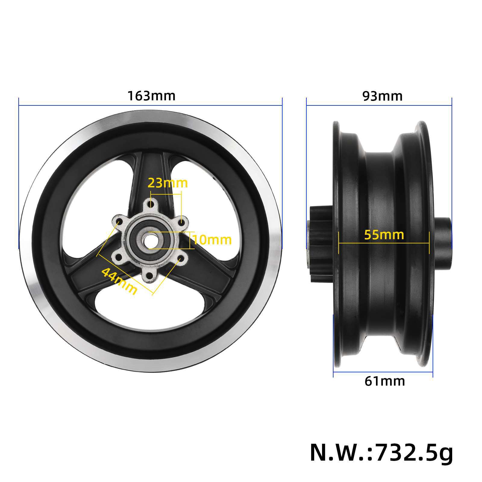 Cubo de rueda de 10 pulgadas con freno de disco de seis orificios para scooter de coche de equilibrio, cubo de rueda de aluminio con neumático de vacío 80/60-6