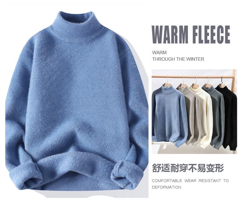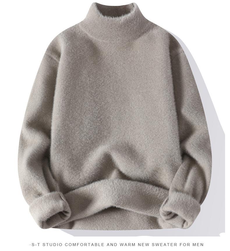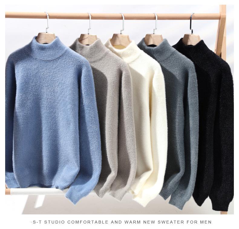Suéter de invierno nuevo para hombre, suéter de punto grueso, camisa de base cálida, suéter de cuello alto medio interior, abrigo, suéter