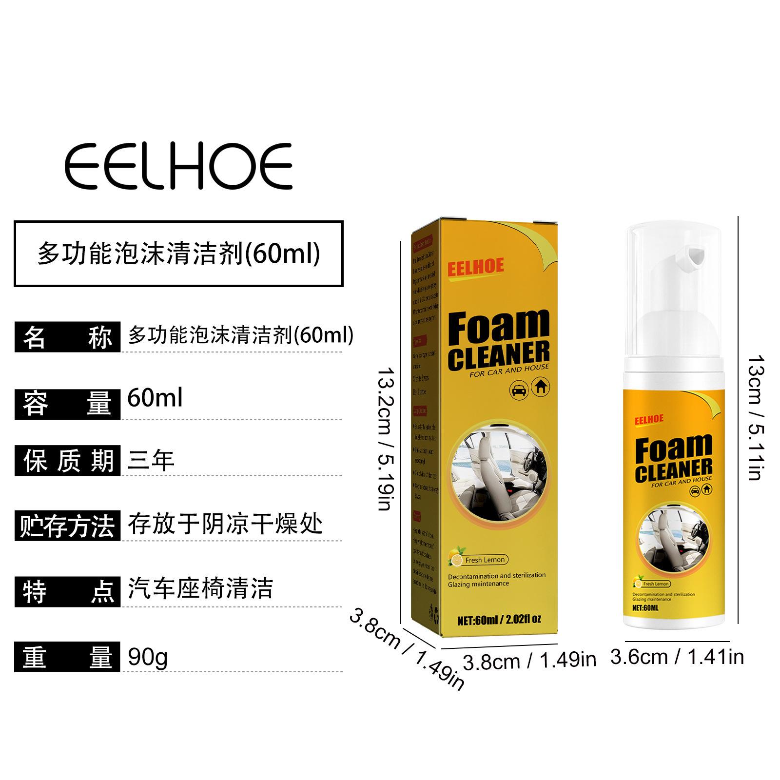Limpiador de espuma multifuncional EELHOE, suministros para el interior del coche, descontaminación, limpiador de asientos y volantes.