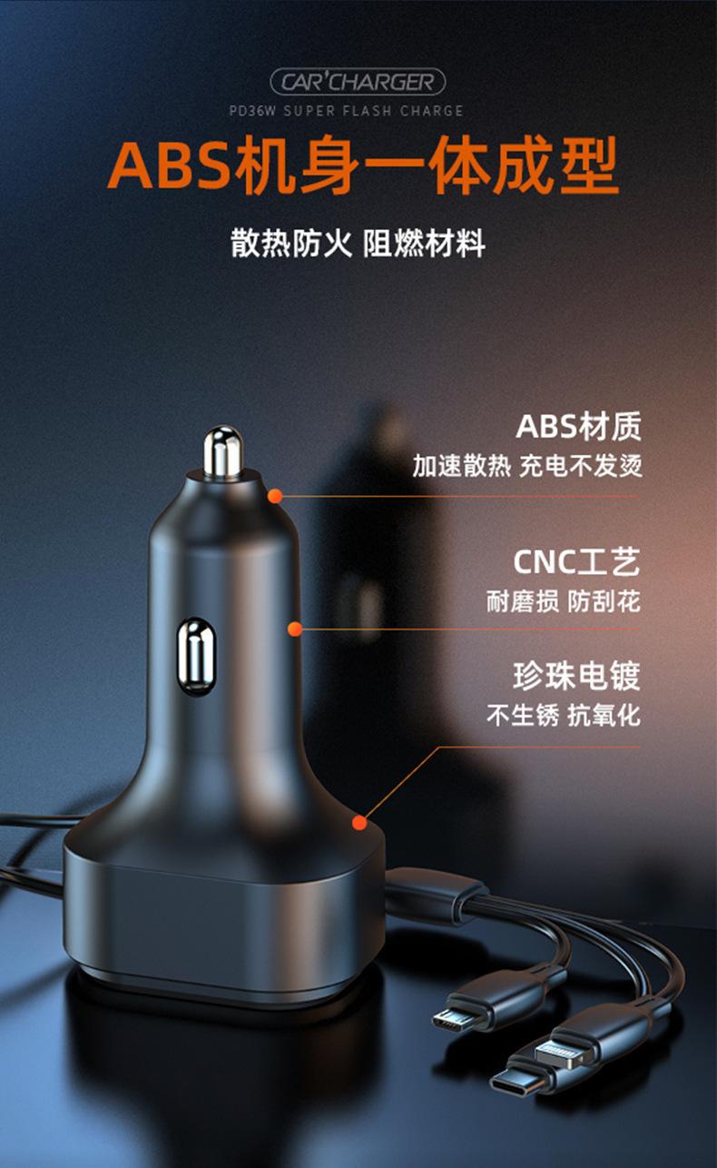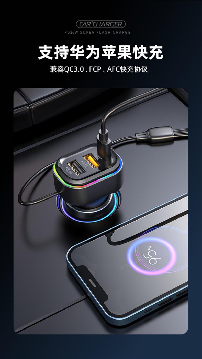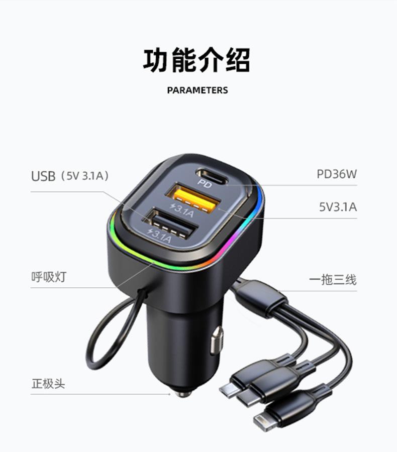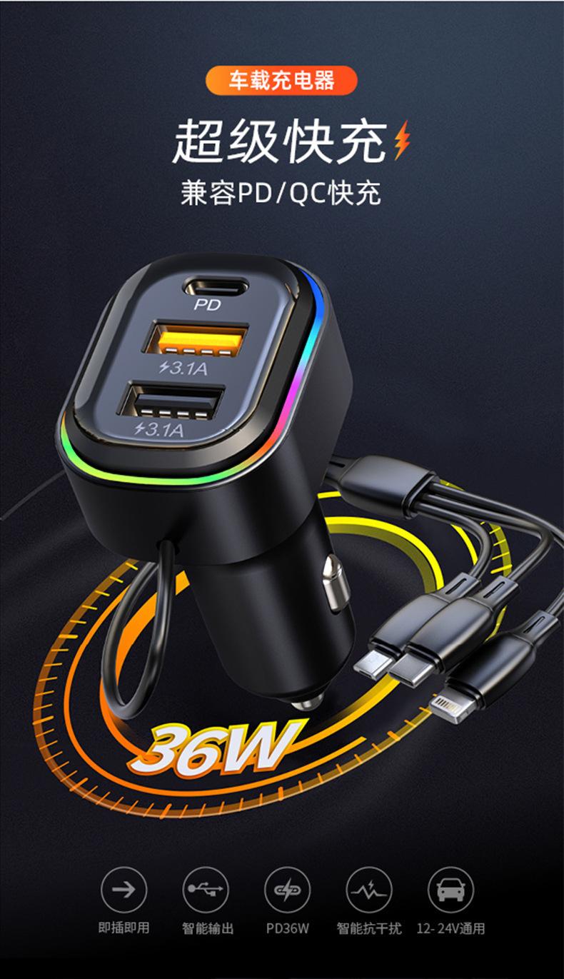 Cable de carga tres en uno: cabezal tipo C (Huawei Super Fast Charge/QC3.0C, potencia de carga adaptativa: 5.5/4A, 9V/2A, 12V/1.5A) + cabezal Apple (5V/1A) + cabezal Android (5V/3.1A)