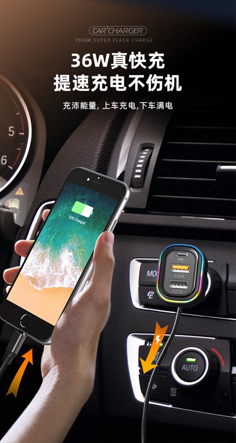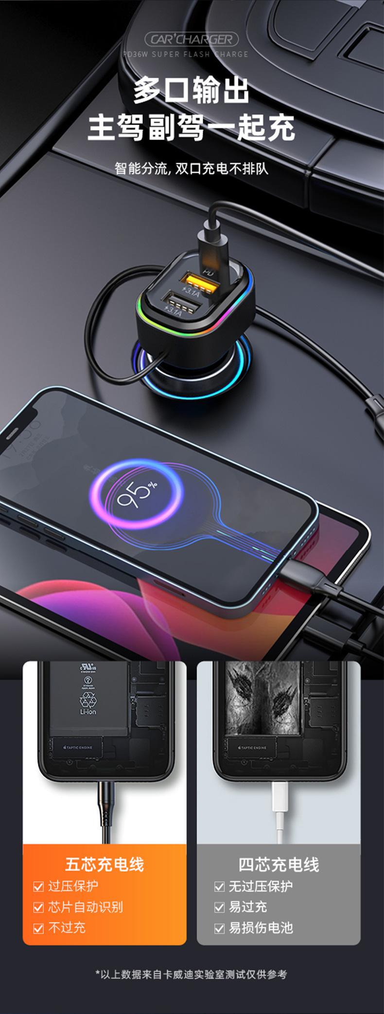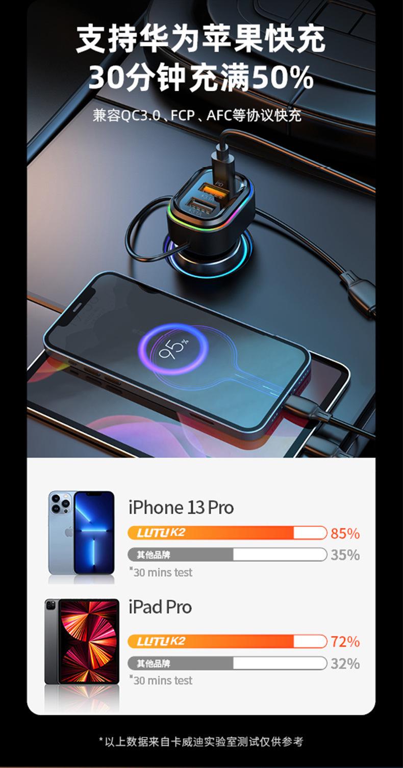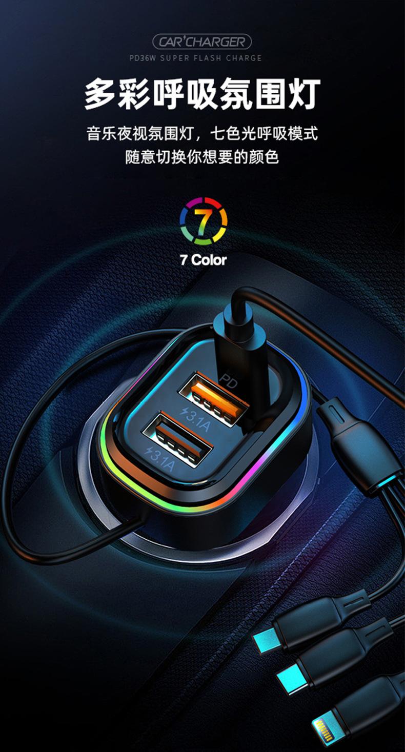 Cable de carga tres en uno: cabezal tipo C (Huawei Super Fast Charge/QC3.0C, potencia de carga adaptativa: 5.5/4A, 9V/2A, 12V/1.5A) + cabezal Apple (5V/1A) + cabezal Android (5V/3.1A)