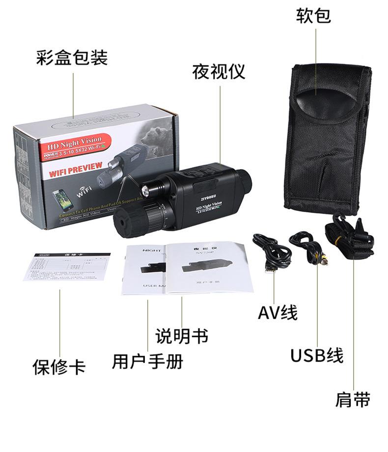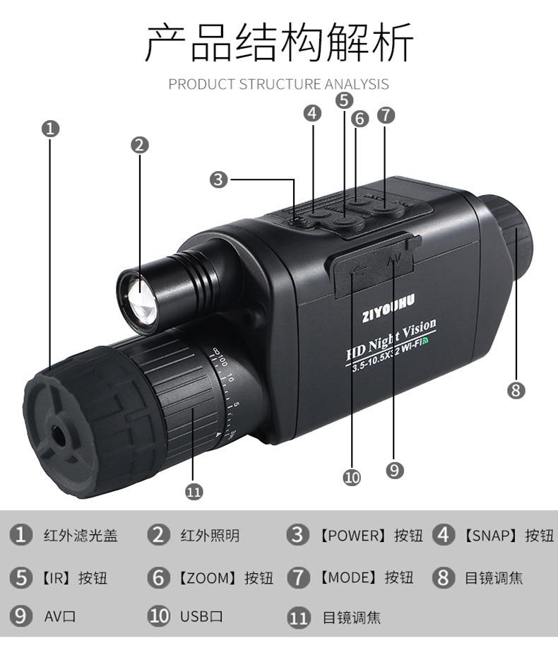 Dispositivo de Visión Nocturna Infrarrojo Ziyouhu D-380E Dispositivo de Visión Nocturna Digital HD de Doble Uso Día y Noche Foto Video Cinta Wifi