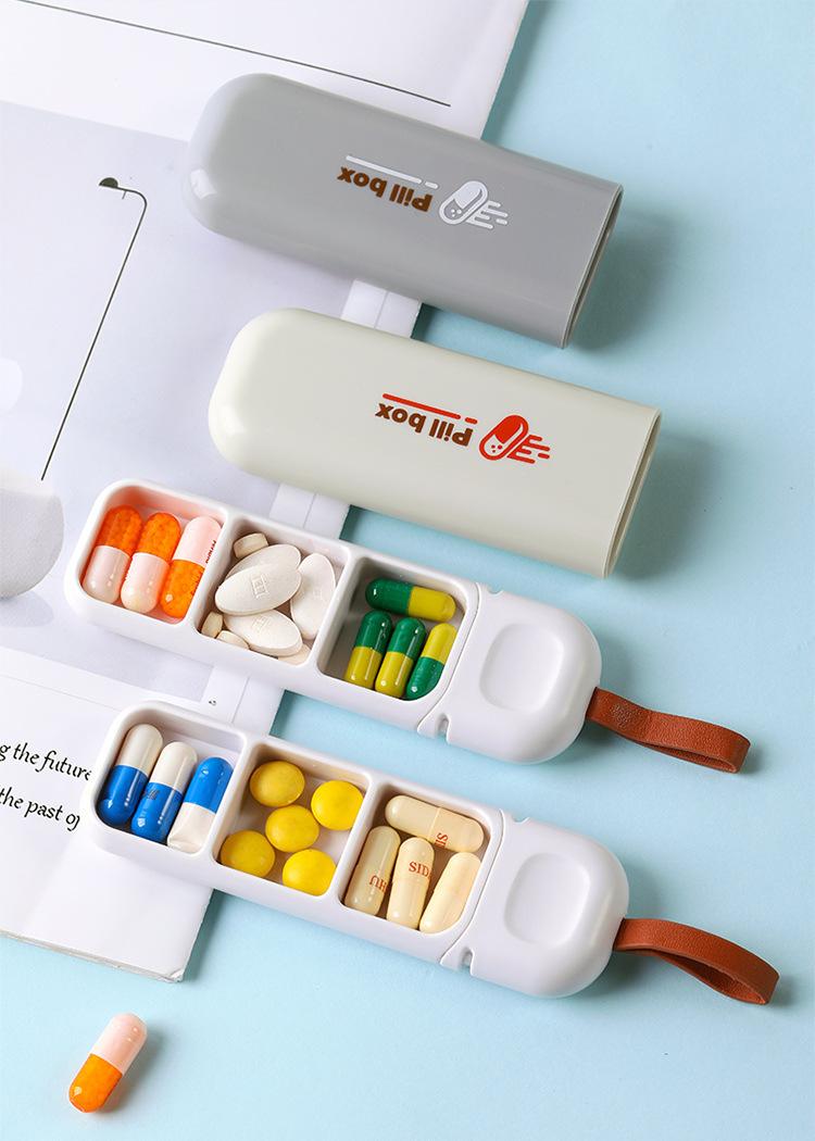 Caja de medicina pequeña portátil USB nuevo hogar mini embalaje caja de embalaje de pastillas portátil 3 compartimentos