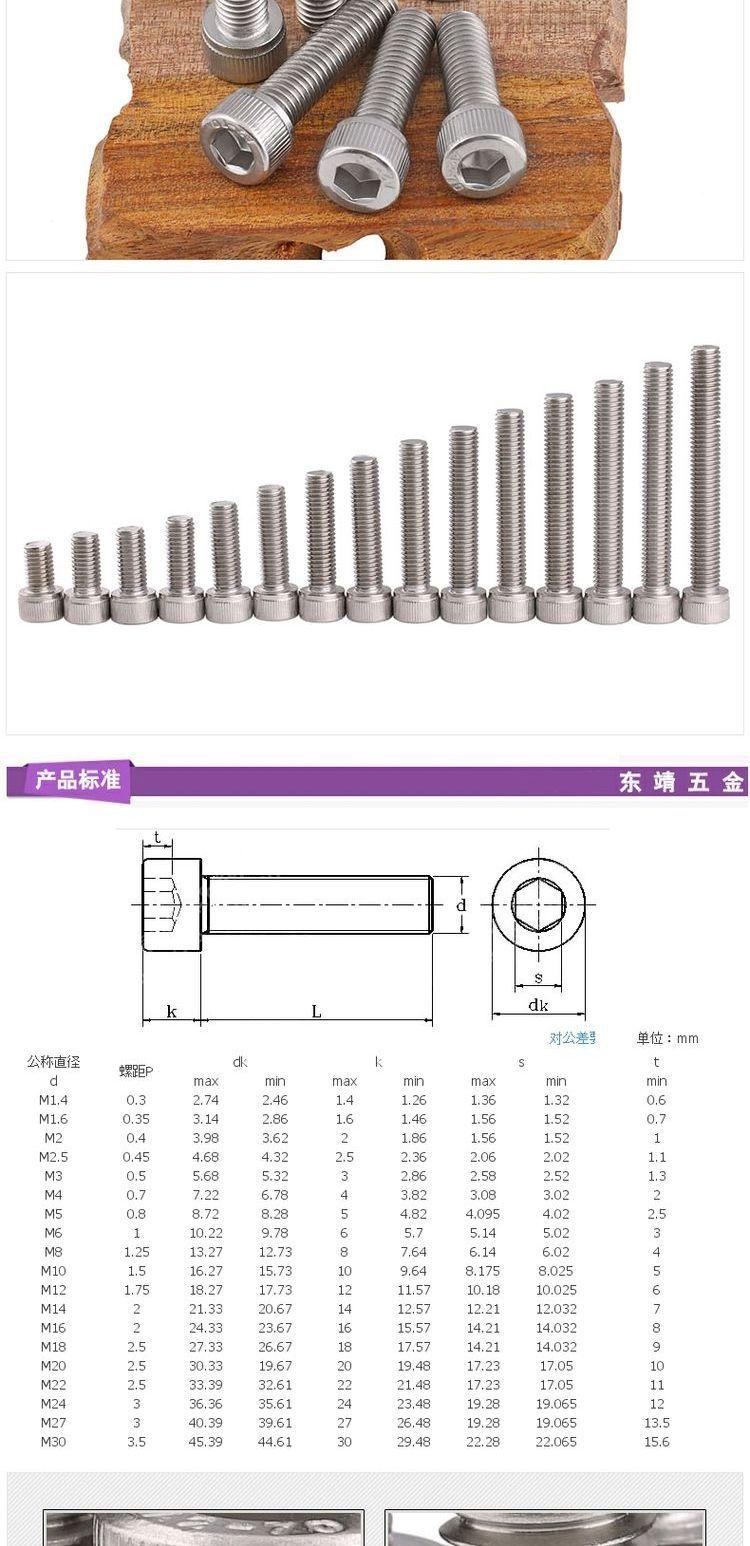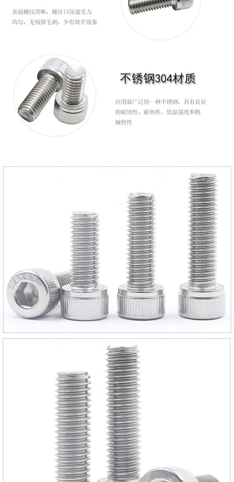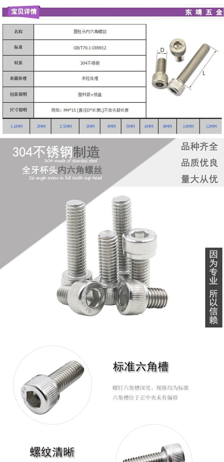 Tornillo de cabeza cilíndrica hexagonal de acero inoxidable 304 M5M6 con dientes completos y cabeza ahuecada DIN912