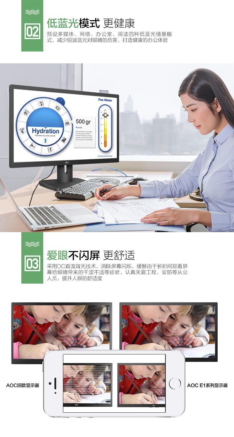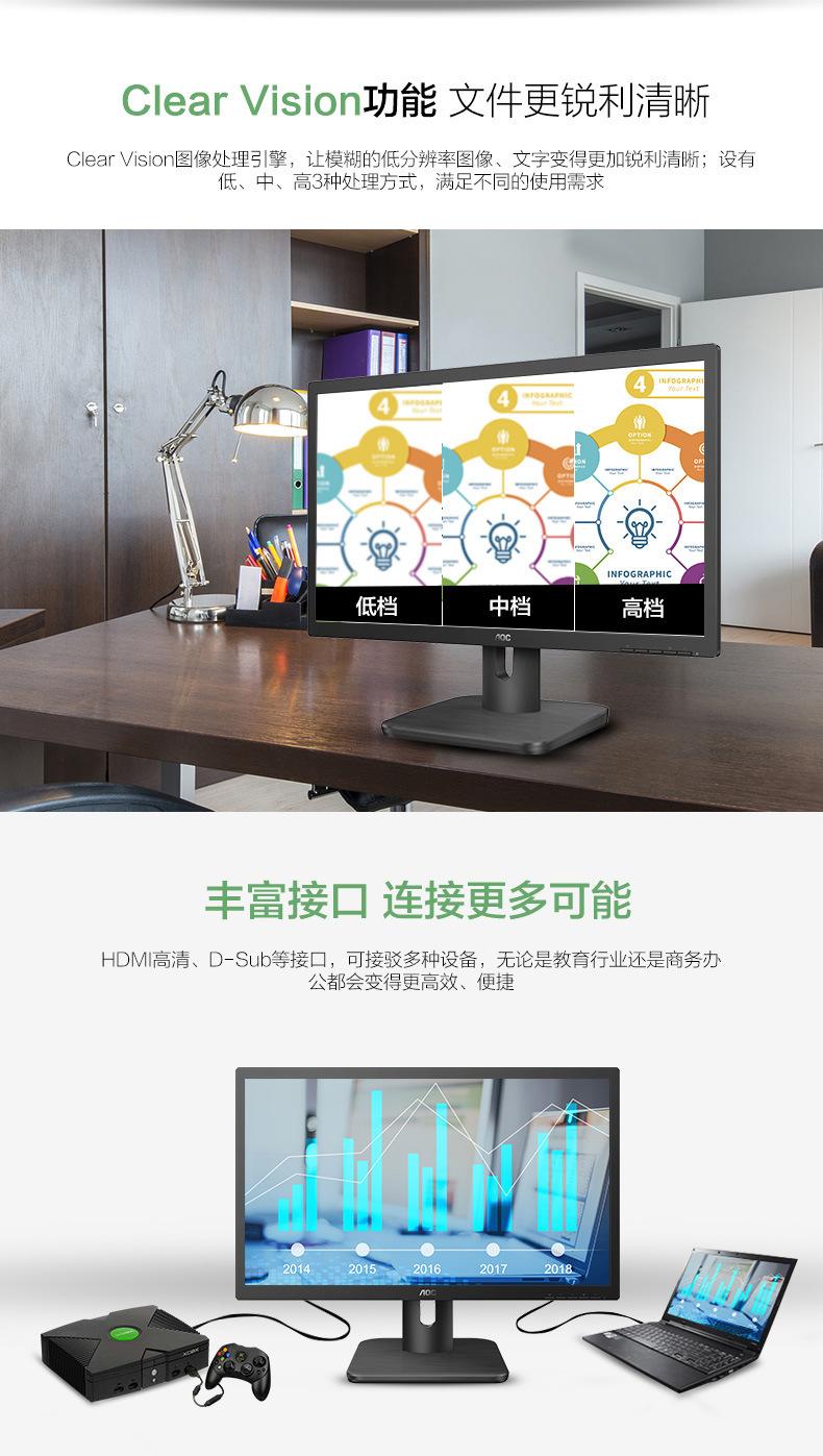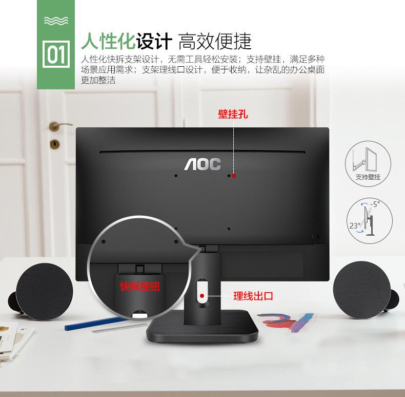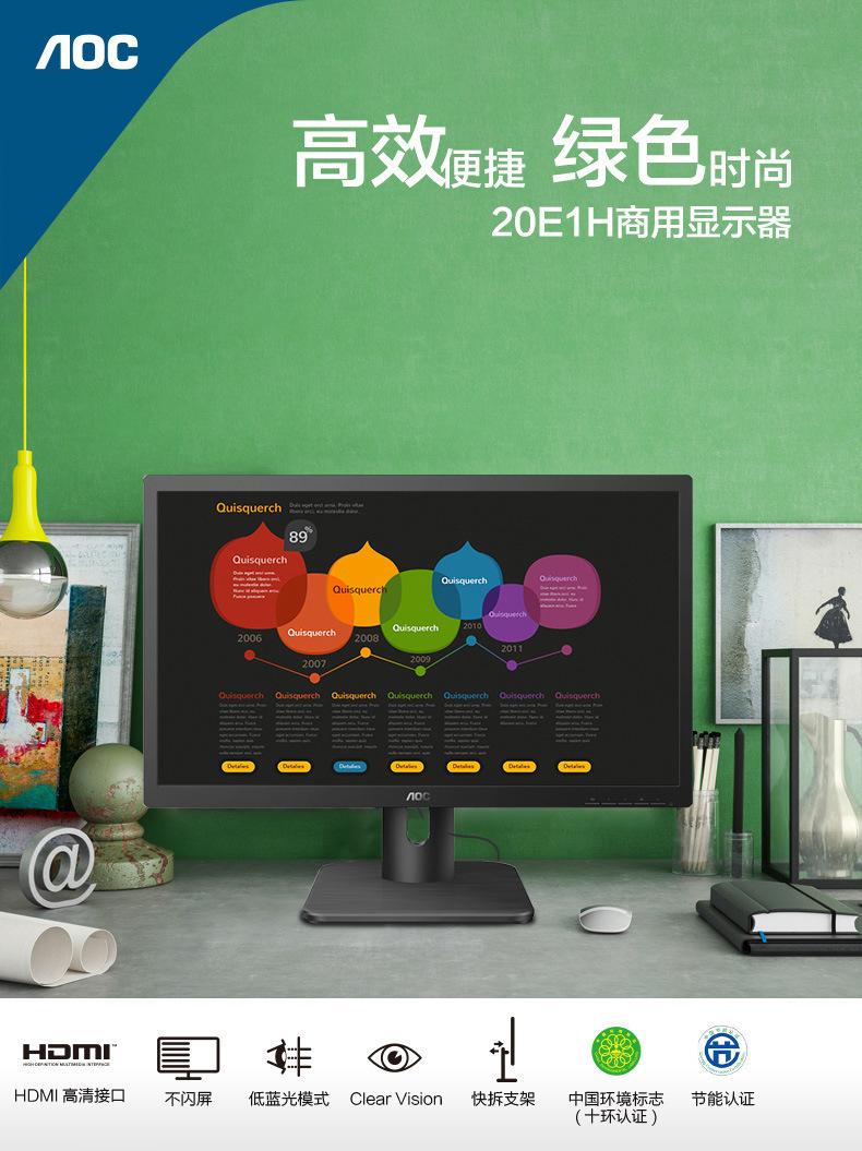 Monitor empresarial AOC 20E1H de 19,5 pulgadas con pantalla HDMI, sin flash y baja luz azul para montaje en pared