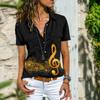 Blusa holgada de manga corta para mujer de Amazon, con estampado de notas finas, para primavera y otoño, comercio exterior transfronterizo