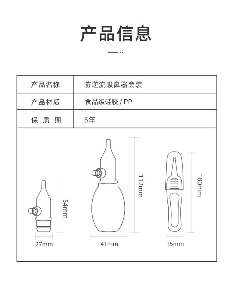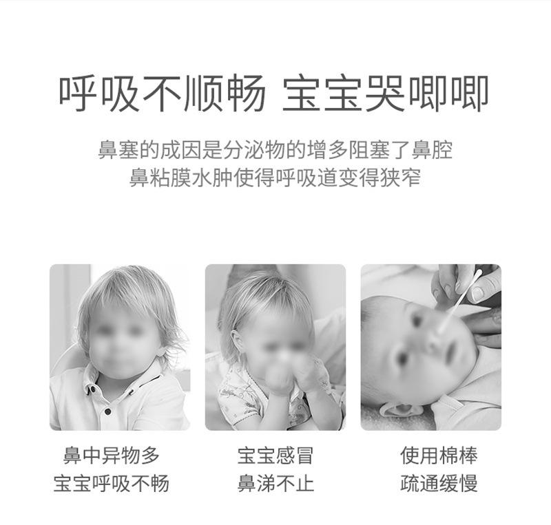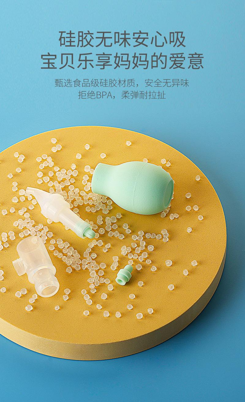 La punta nasal está hecha de silicona líquida de grado alimenticio. Es atóxica e insípida, no contiene impurezas, es suave, no tiene esquinas afiladas y no daña al bebé. La cubierta antipolvo está hecha de policarbonato importado de Alemania, que no solo bloquea el polvo, sino que también previene eficazmente la contaminación bacteriana de la punta nasal, lo que la hace segura e higiénica.