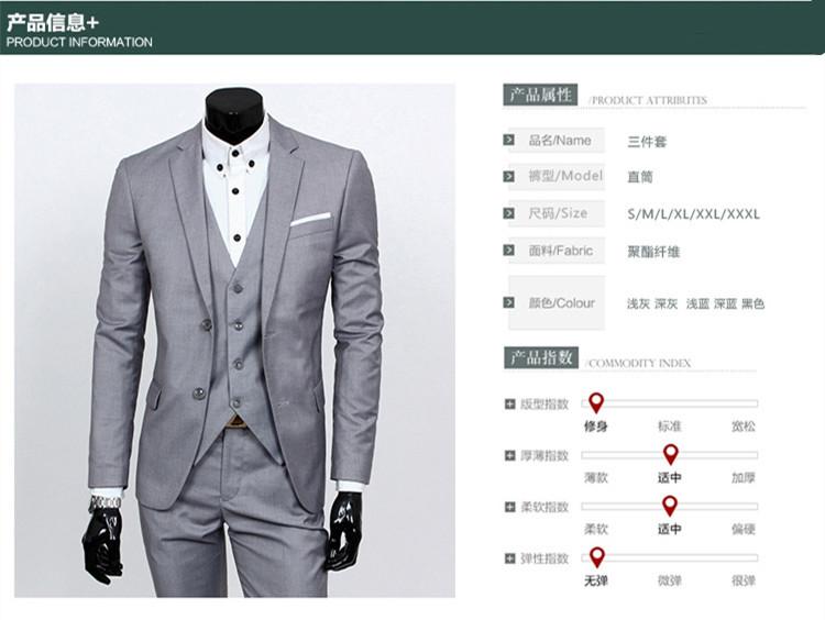 Otoño 2019 Nueva moda de ropa de negocios para hombres Nuevo traje de boda para hombres Traje juvenil ajustado de tres piezas