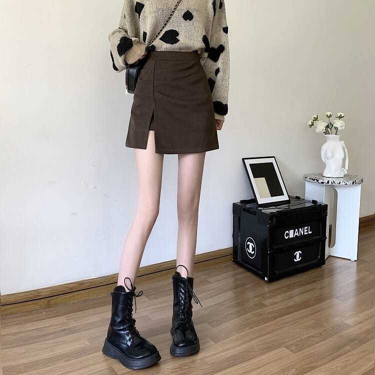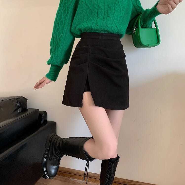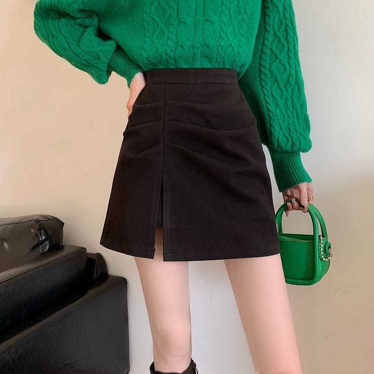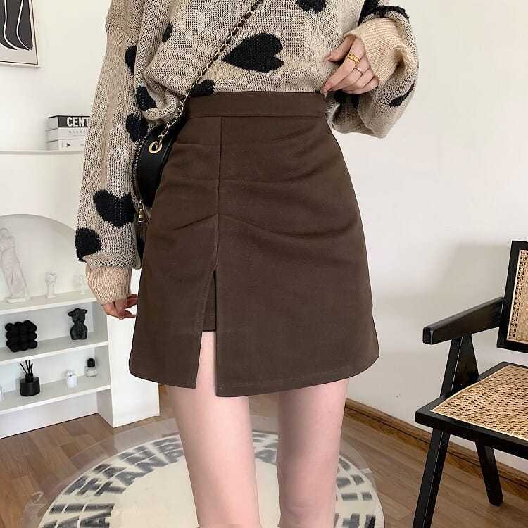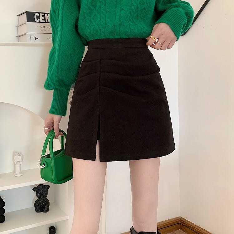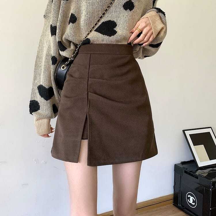 Falda plisada con abertura en la cadera Primavera/Verano 2024 Nuevo diseño de moda falda de cintura alta Falda de línea A Ropa de mujer