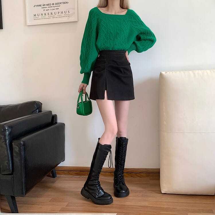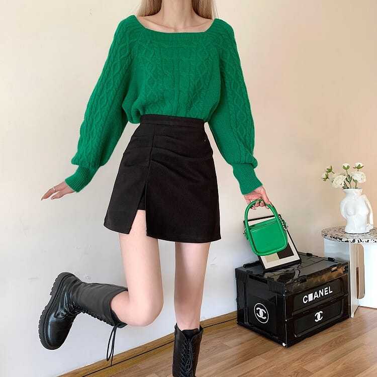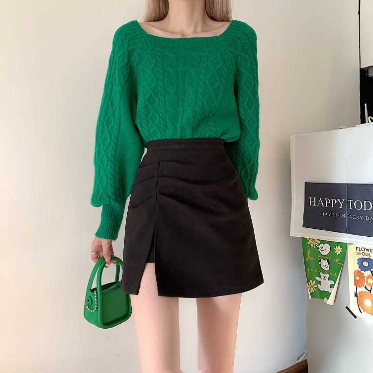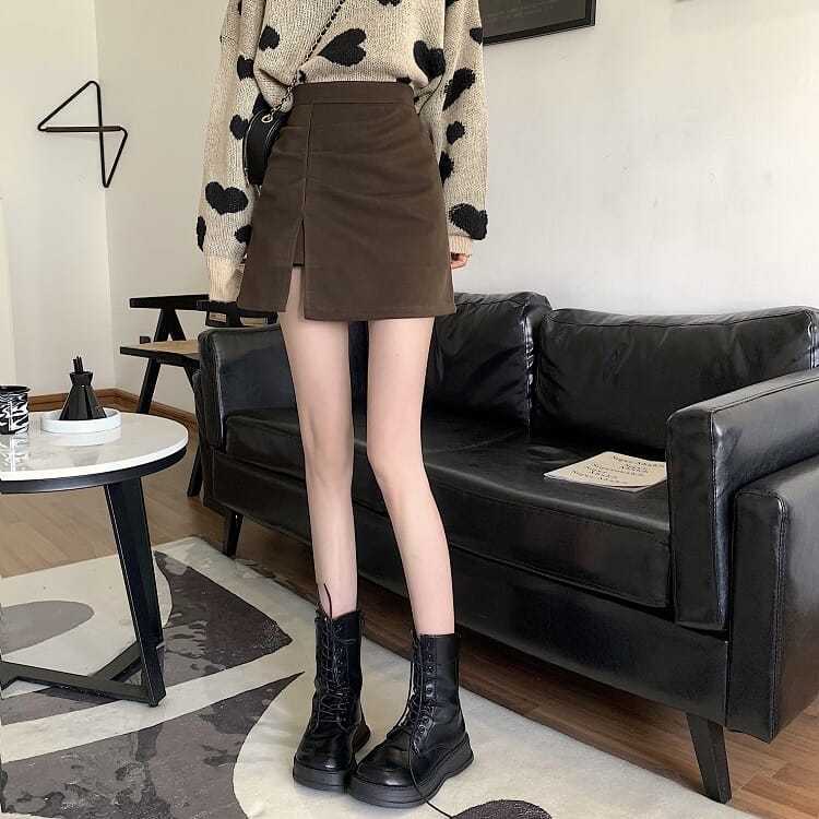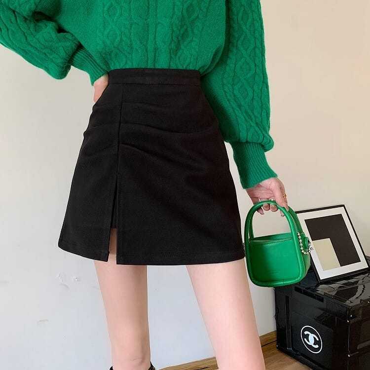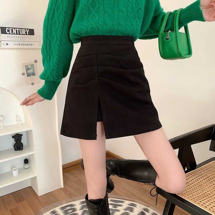 Falda plisada con abertura en la cadera Primavera/Verano 2024 Nuevo diseño de moda falda de cintura alta Falda de línea A Ropa de mujer