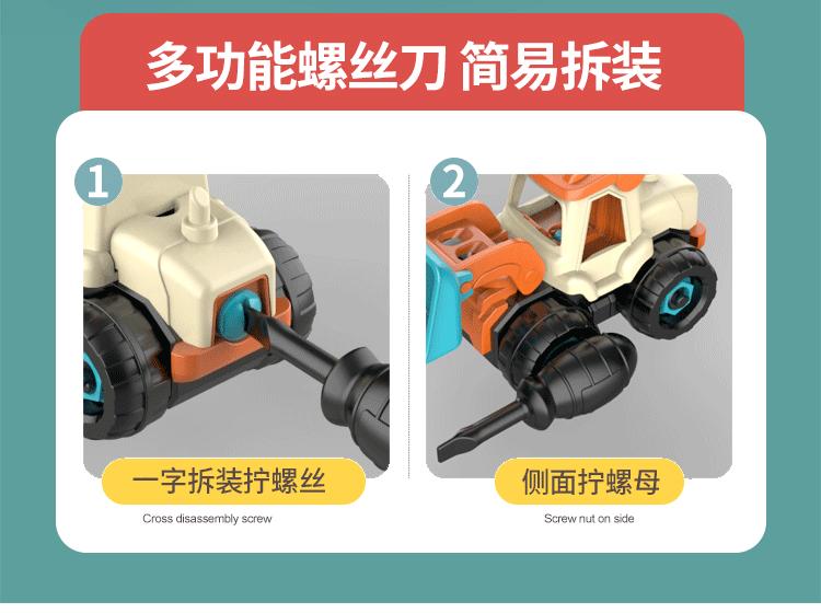 Vehículo de ingeniería de ensamblaje para niños, ensamblaje de tornillos y tuercas, juguetes educativos, excavadora desmontable, de 2 a 3 a 6 años