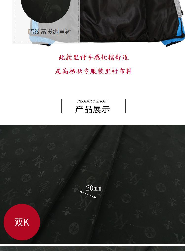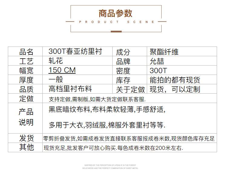 Forro de algodón ligero de alta densidad de 300 t, forro de seda con patrón oscuro, forro para chaqueta de plumón de traje
