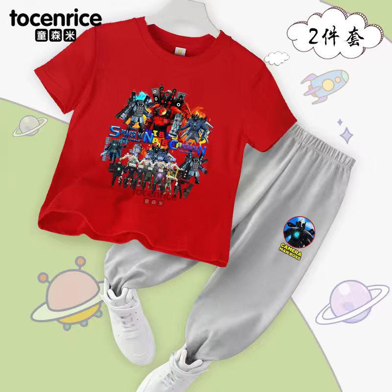 Traje de Verano para Niños Titan Monitor Tv Toilet Man Nuevo Conjunto de Dos Piezas de Camiseta y Pantalón Anti-Mosquitos de Manga Corta para Niños 2