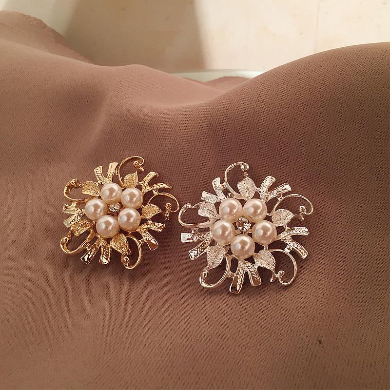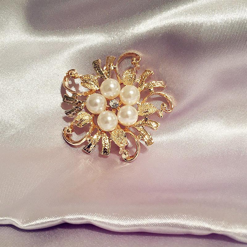 Broche de perla hueca creativo coreano, ramillete de diamantes de aleación, hebilla de alfiler para mujer, fabricantes de accesorios de ropa al por mayor