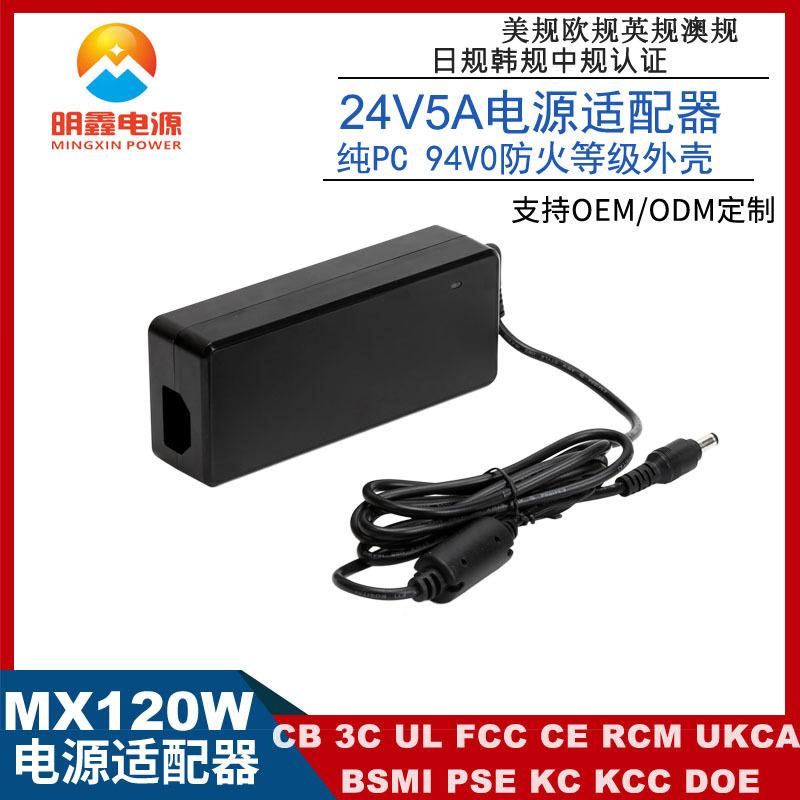 Adaptador de corriente de la serie MX120W con circuito PFC, certificado a nivel mundial