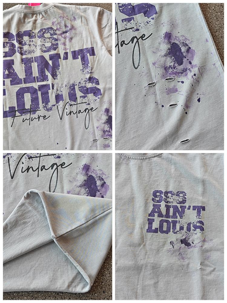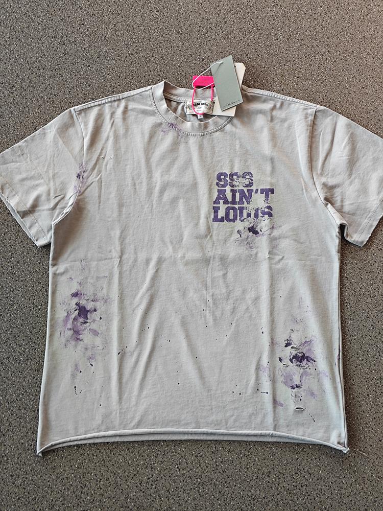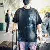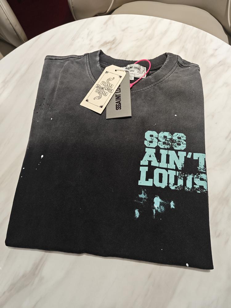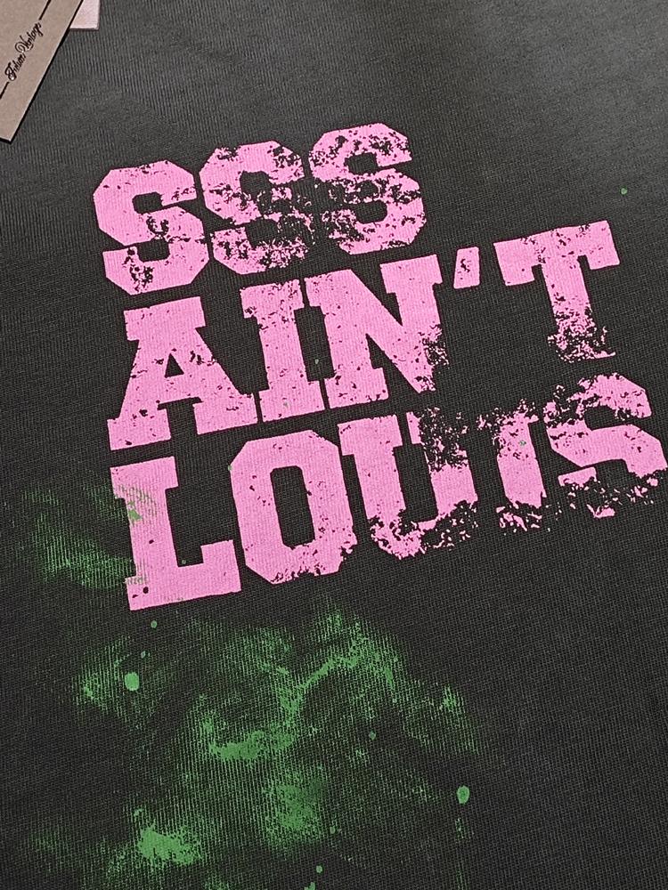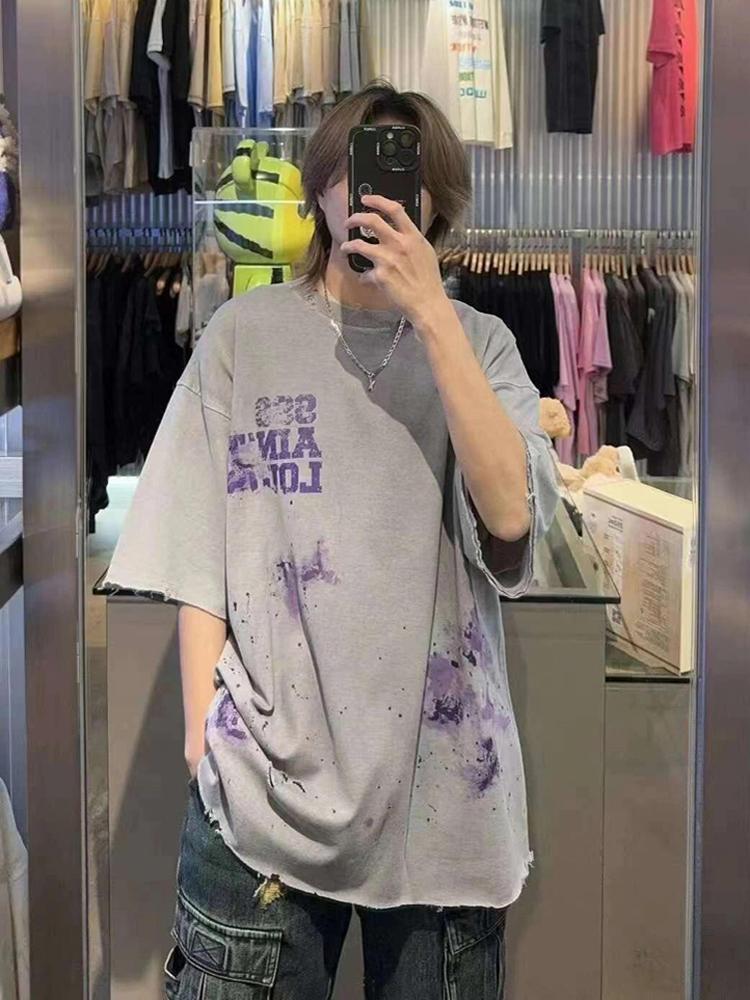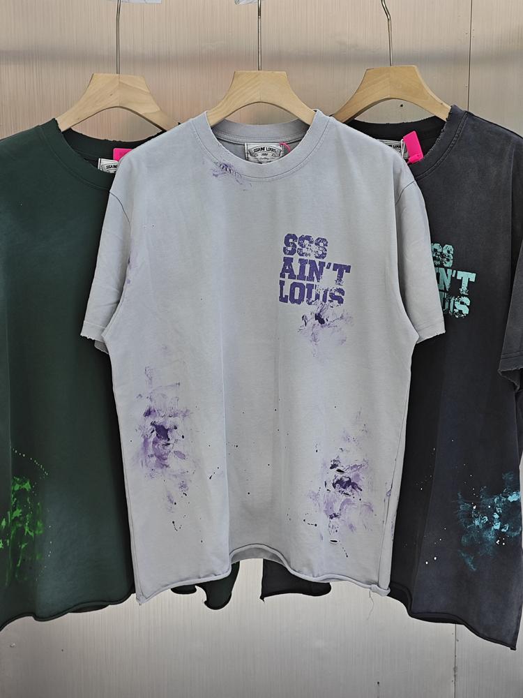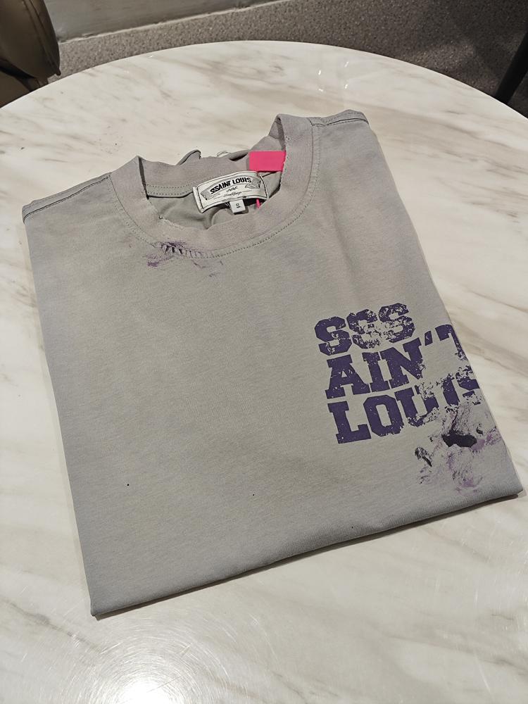 Camiseta de manga corta vintage lavada con estampado de graffiti de Saint Louis, estilo vintage, para hombre y mujer. Marca de moda.