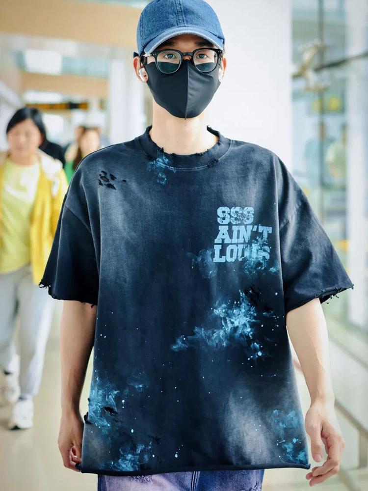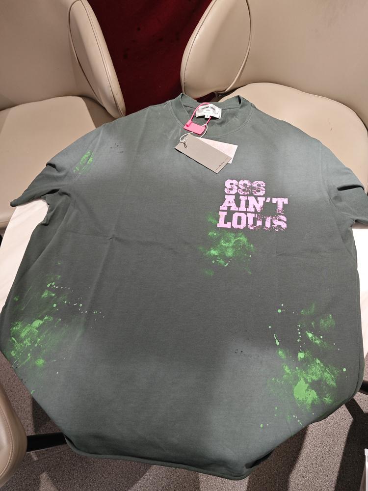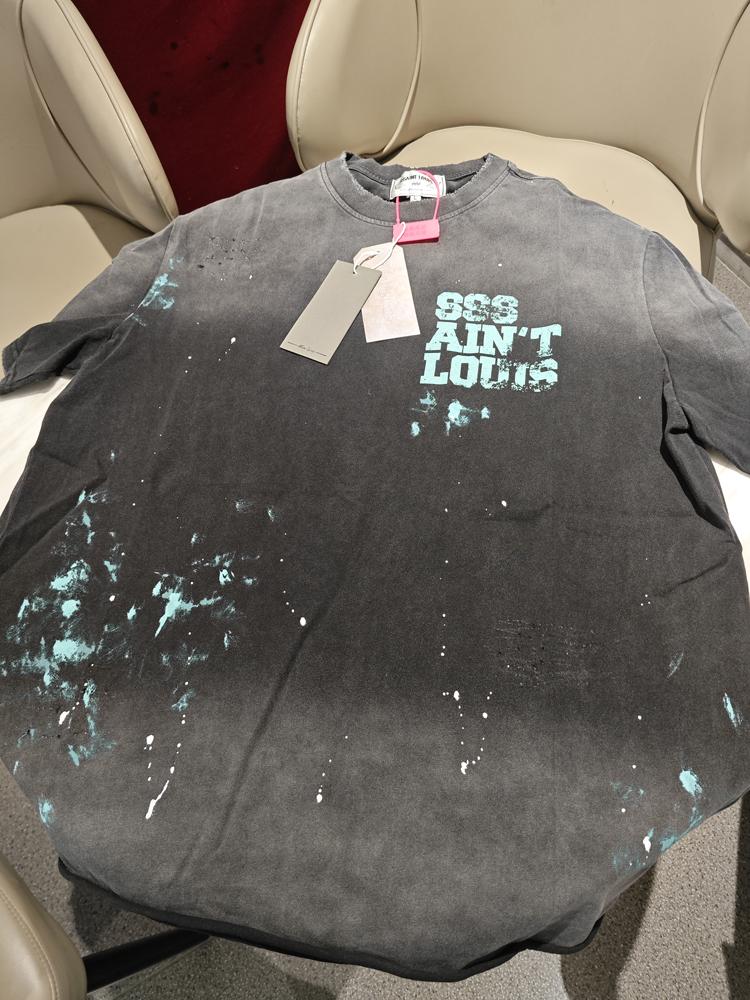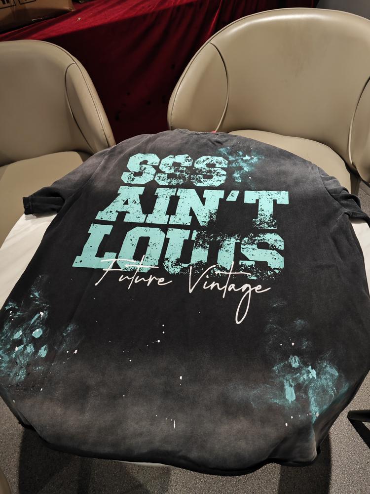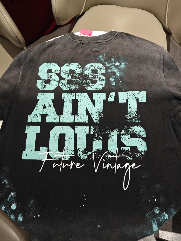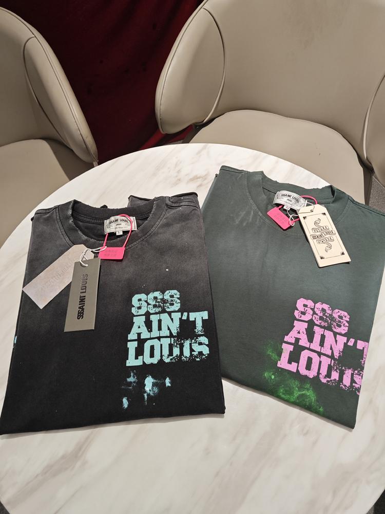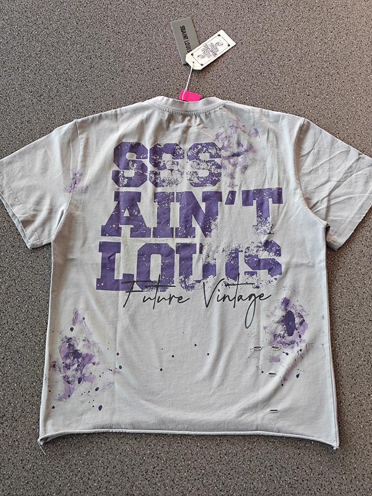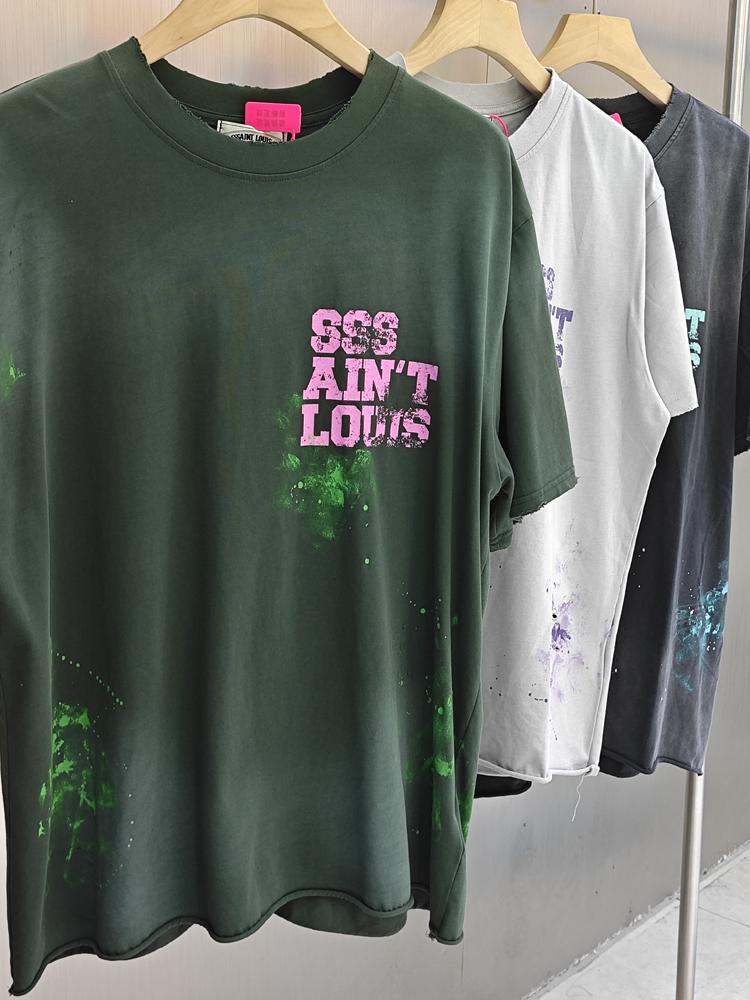 Camiseta de manga corta vintage lavada con estampado de graffiti de Saint Louis, estilo vintage, para hombre y mujer. Marca de moda.