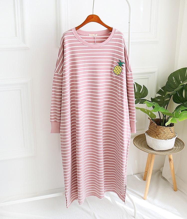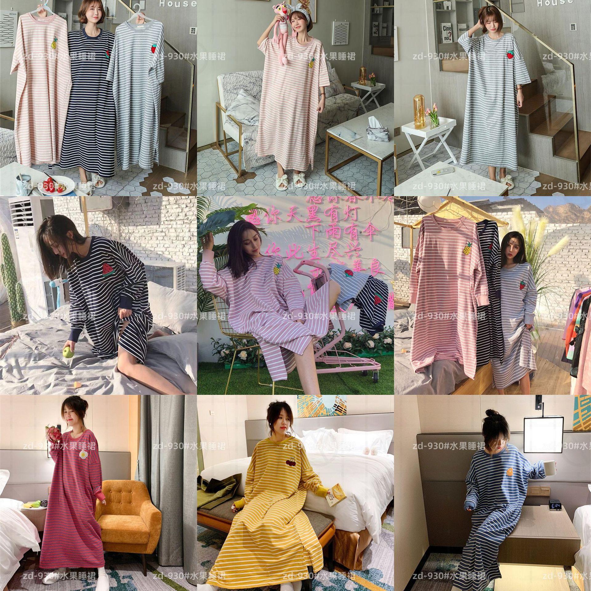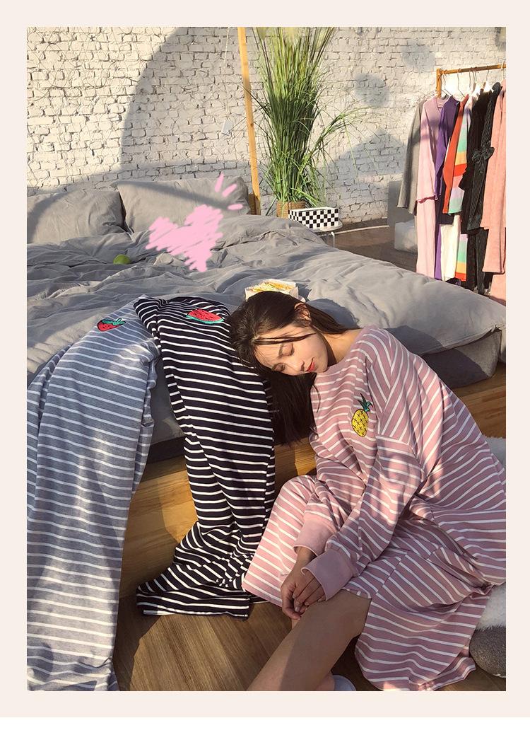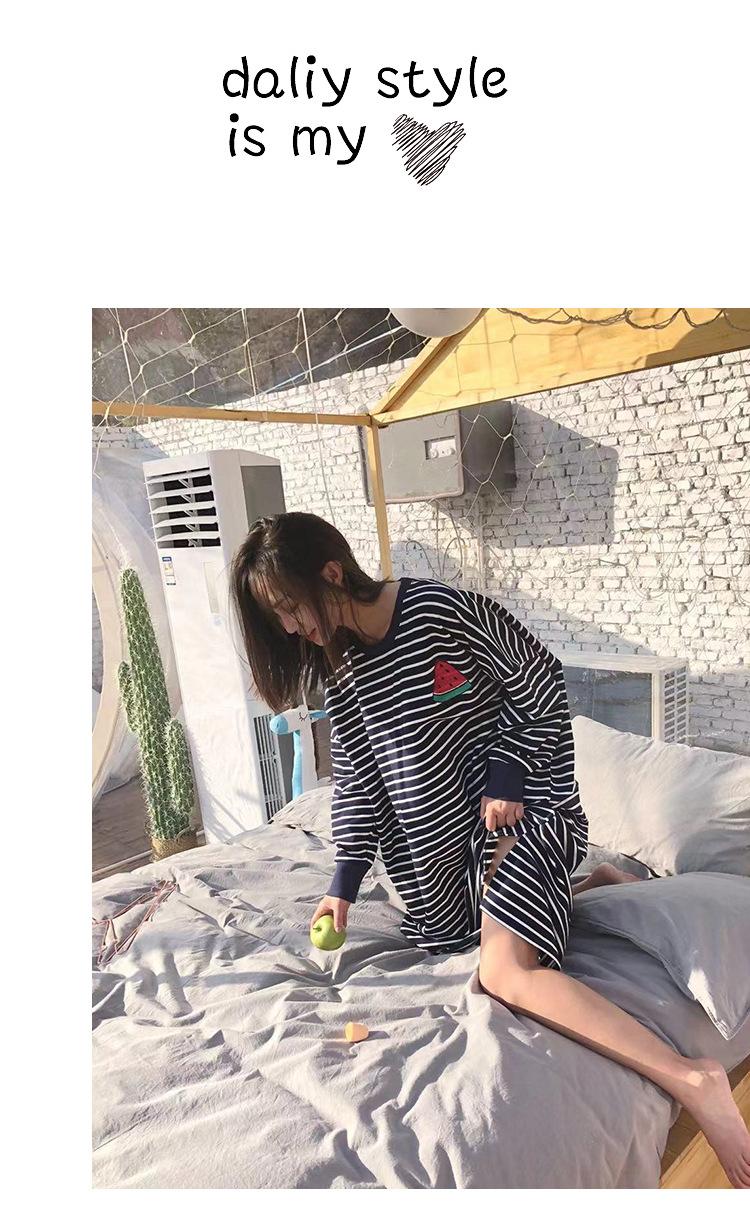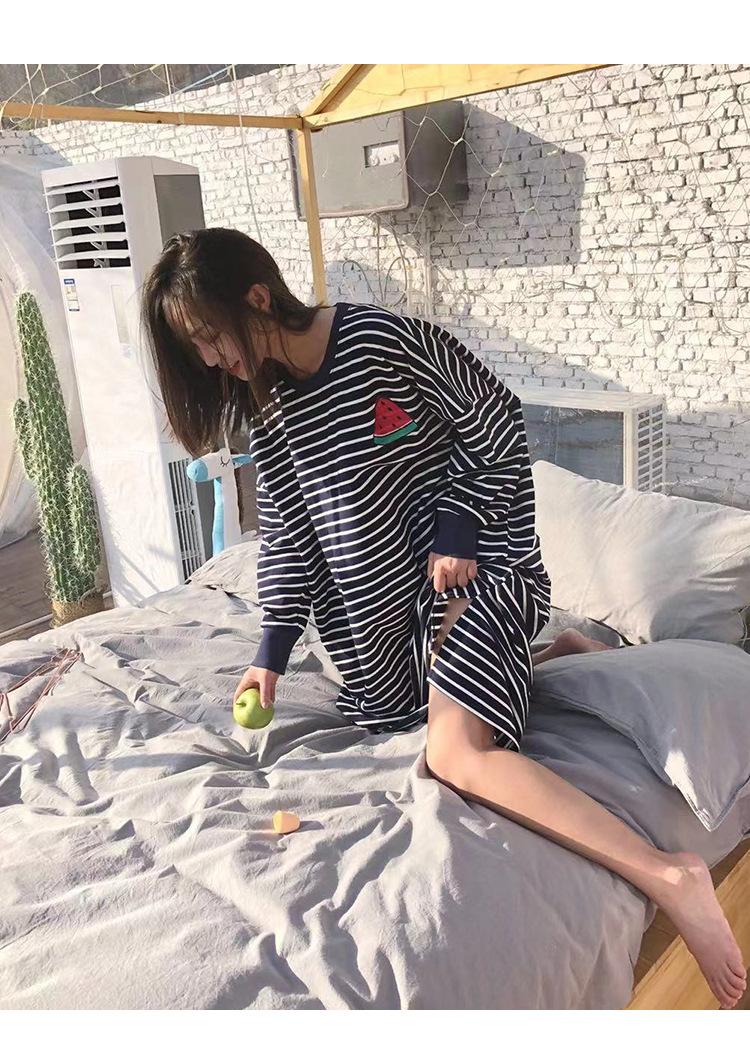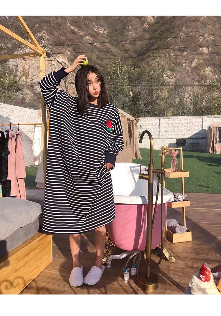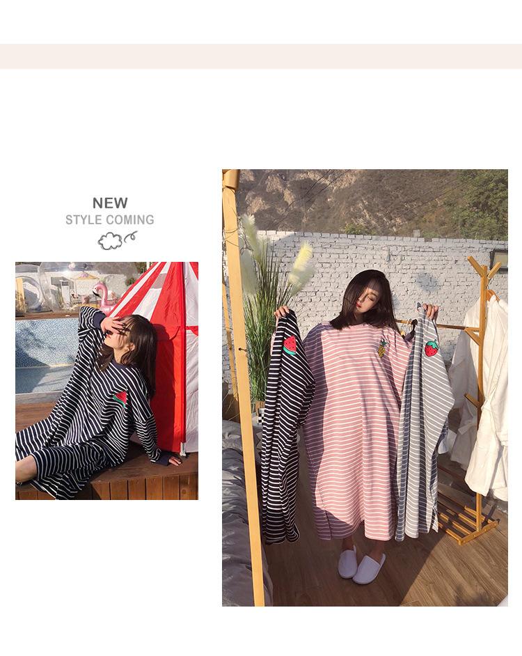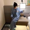 Camisón de mujer de manga larga, primavera y otoño, estilo de celebridades de Internet, suelto, a rayas, ropa de casa, venta al por mayor, 2024