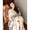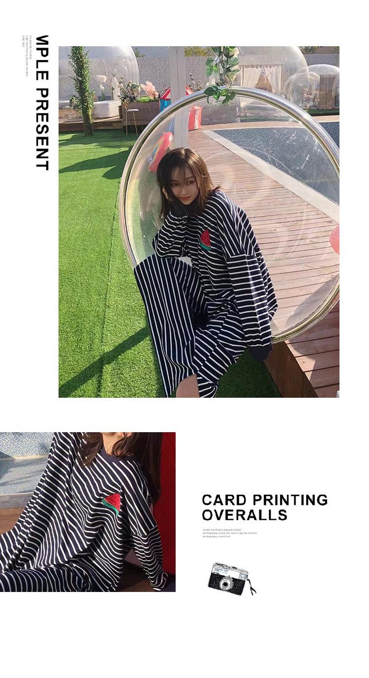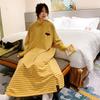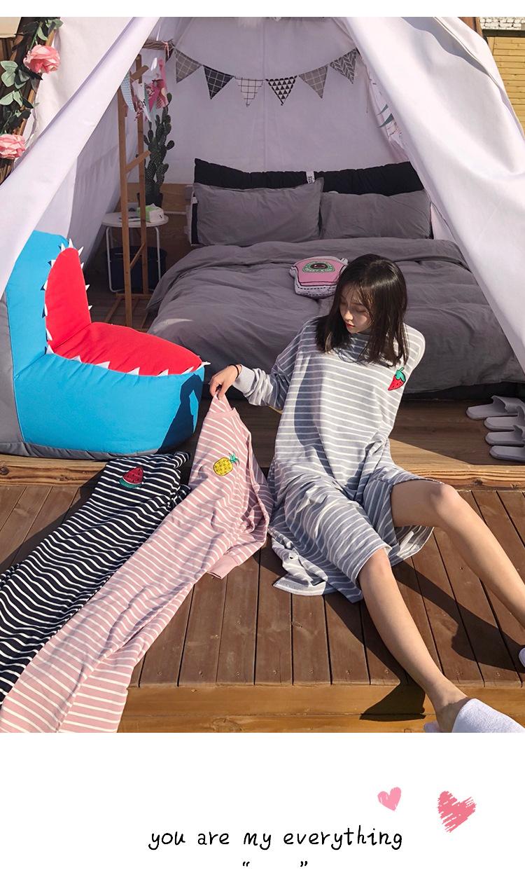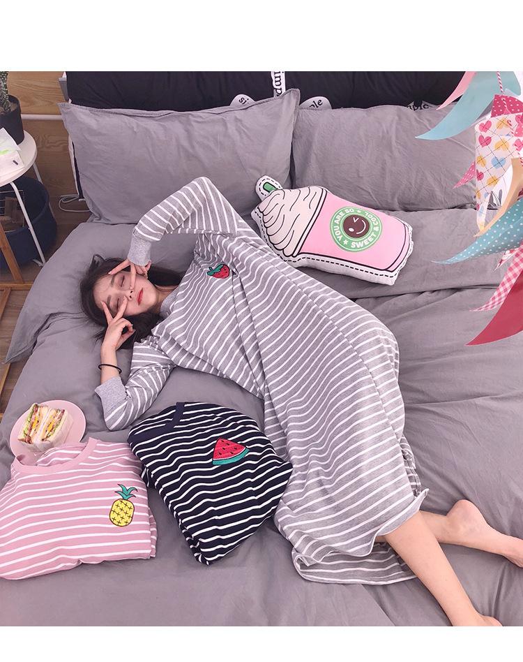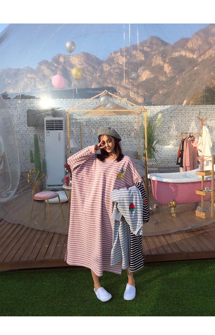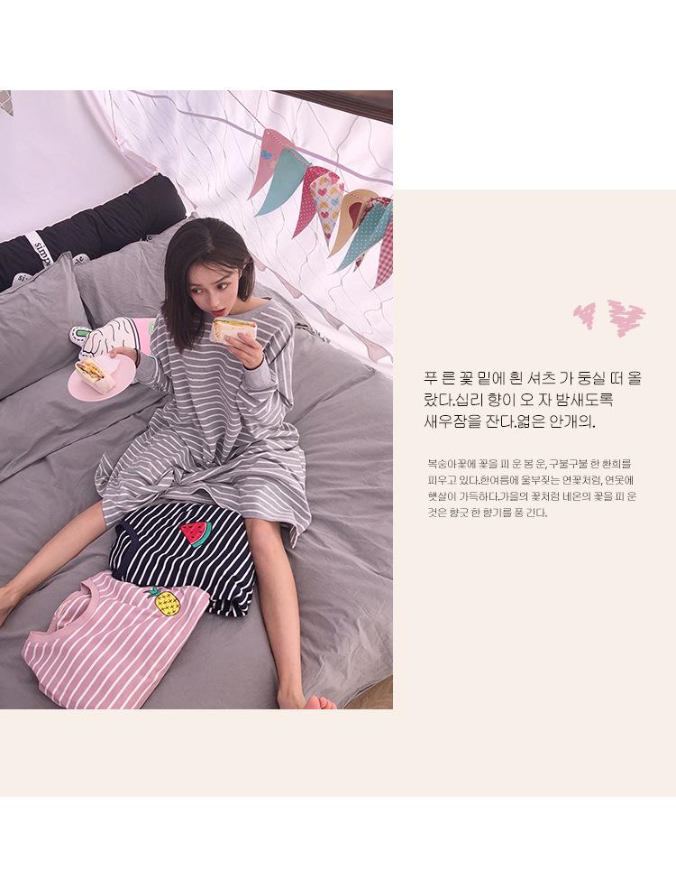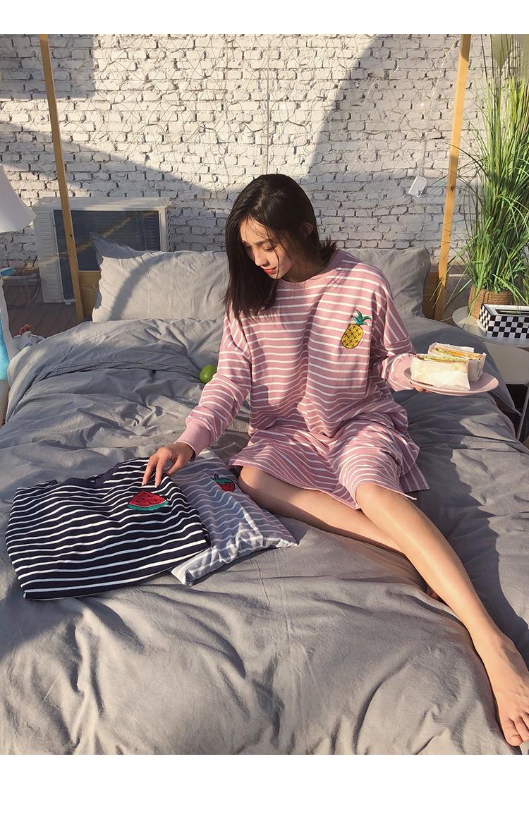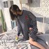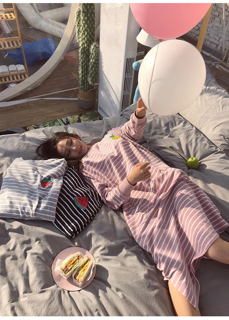 Camisón de mujer de manga larga, primavera y otoño, estilo de celebridades de Internet, suelto, a rayas, ropa de casa, venta al por mayor, 2024