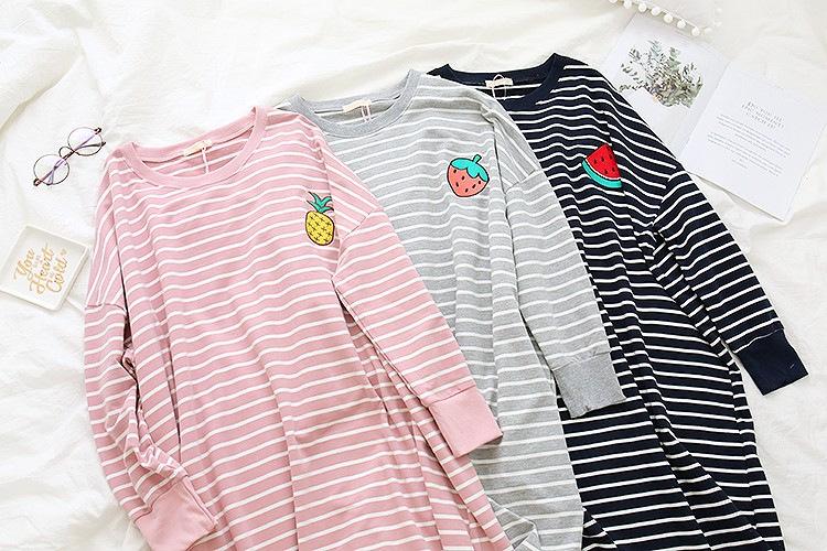 zd-930# black stripe watermelon dress, zd-930# pink striped pineapple dress, zd-930# gray striped strawberry d...