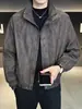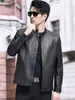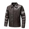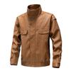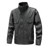 Chaqueta de Cuero Retro Americana para Hombre para Primavera y Otoño, Nuevo Estilo Cuello Alto Delgada Multibolsillos Abrigo de Cuero