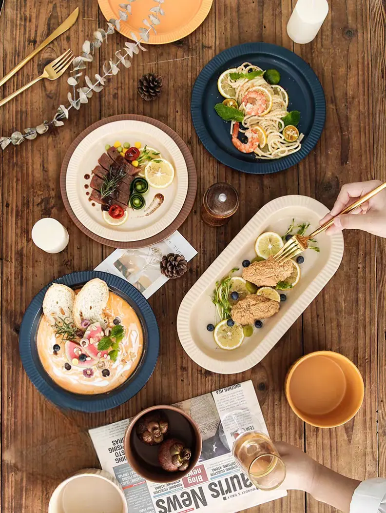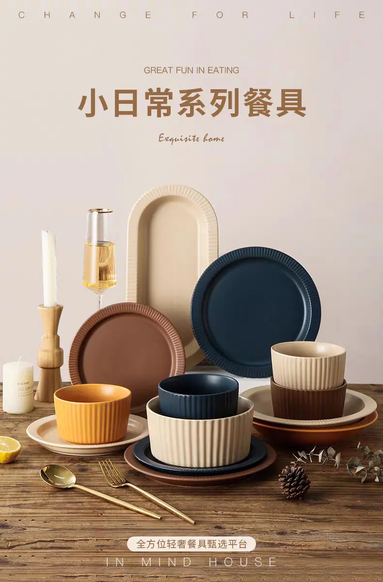 Juego de cuenco y plato creativo para el hogar, vajilla de cerámica de lujo nórdica ligera, regalo, cuenco de arroz, plato de verduras, combinación de cuenco y plato
