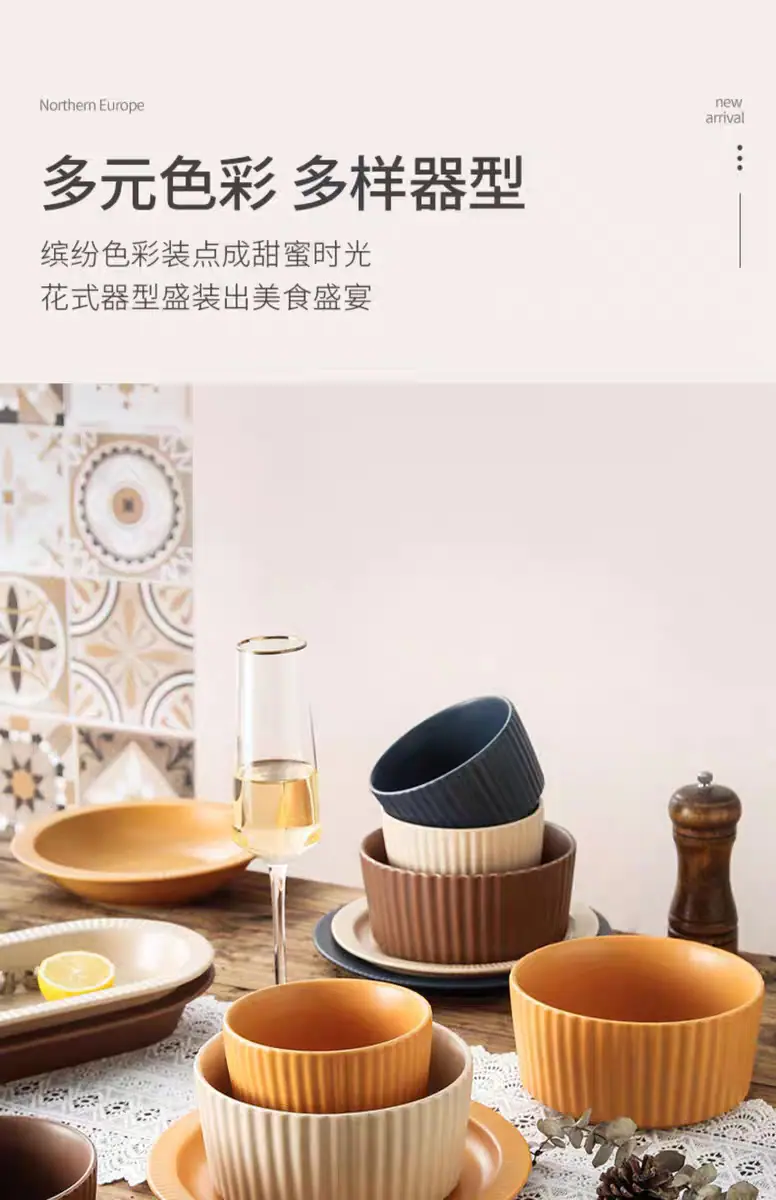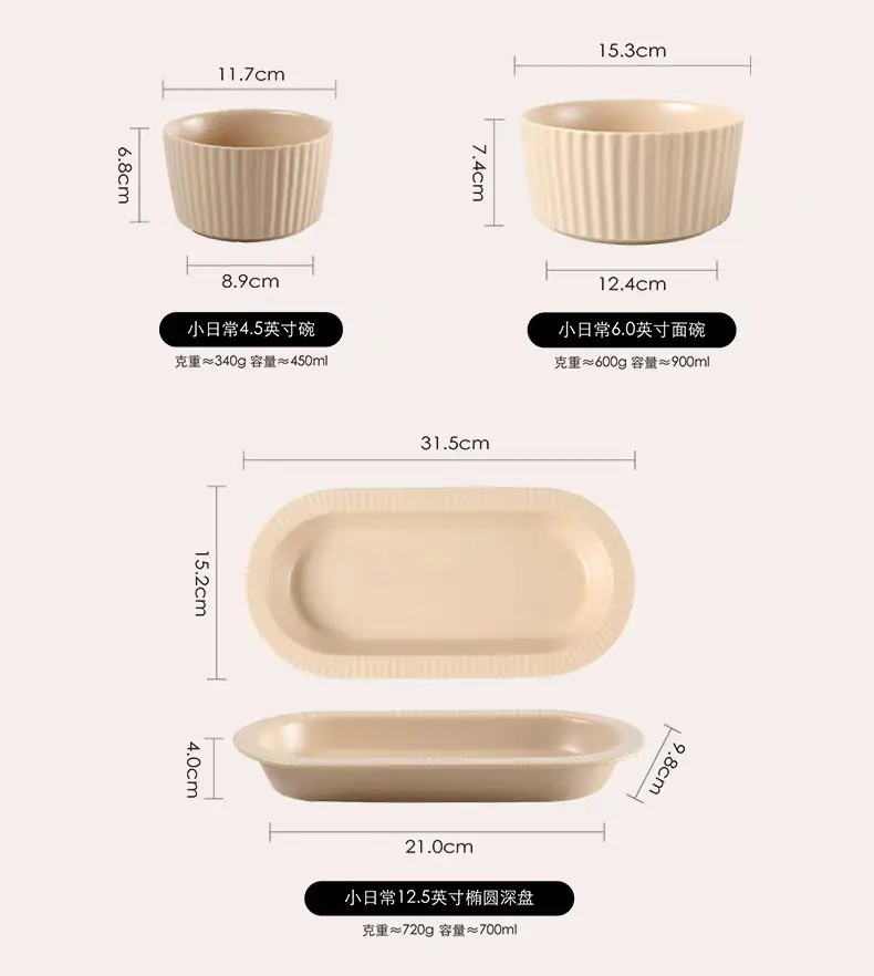 4.5inch bowls (khaki), 6inch noodle bowls (brown), 6inch noodle bowls (khaki color), 8.5inch shallow tray (bro...