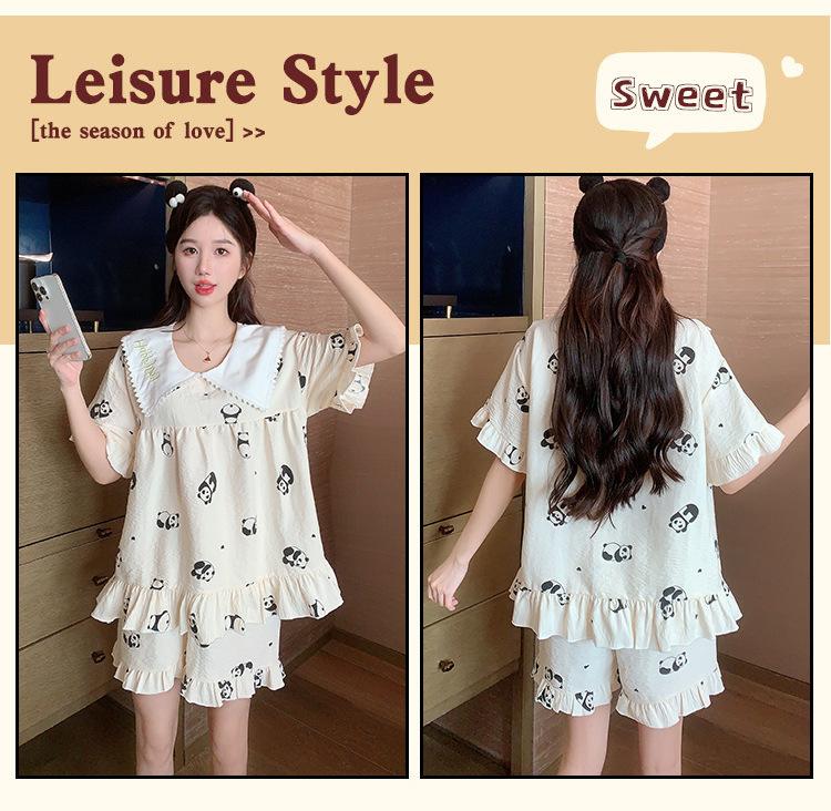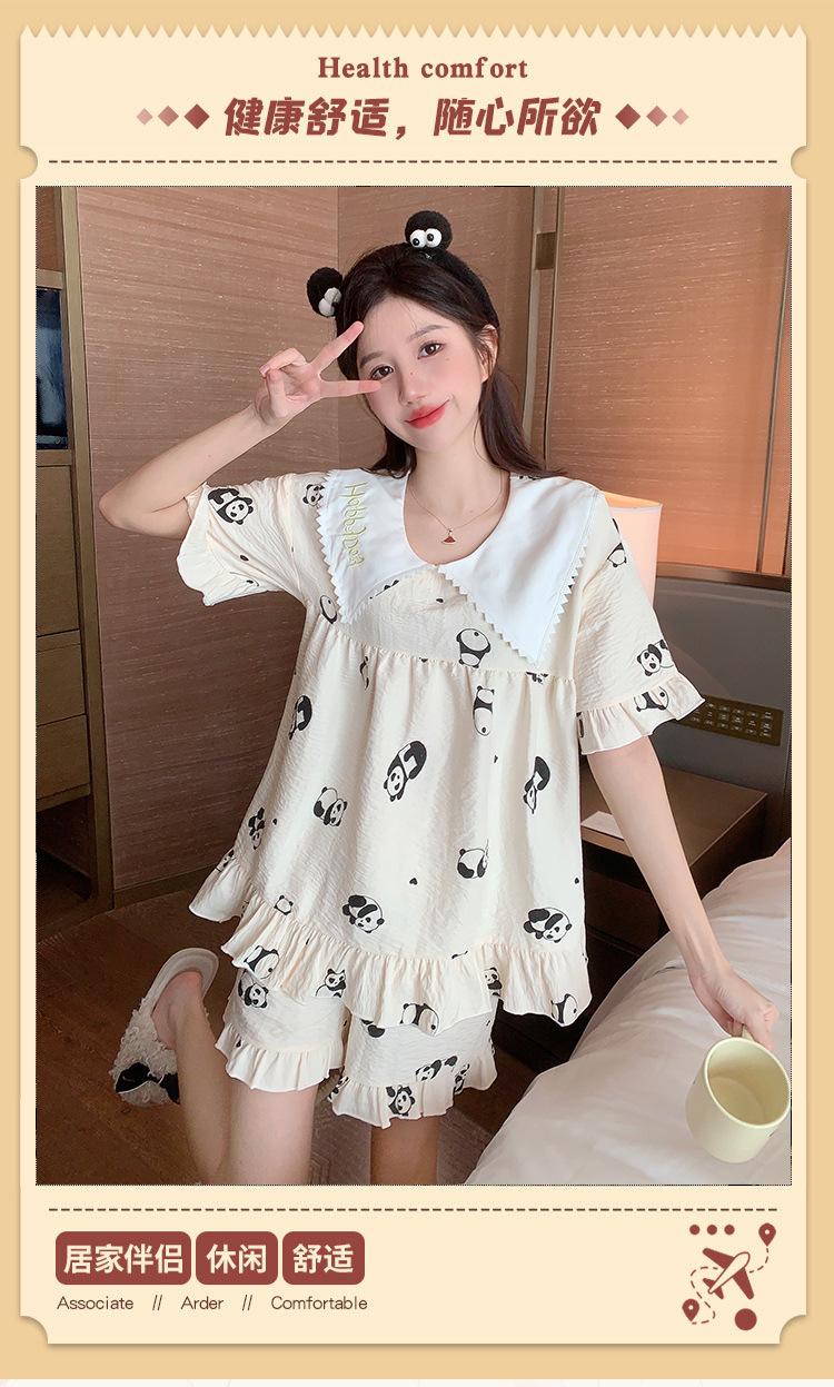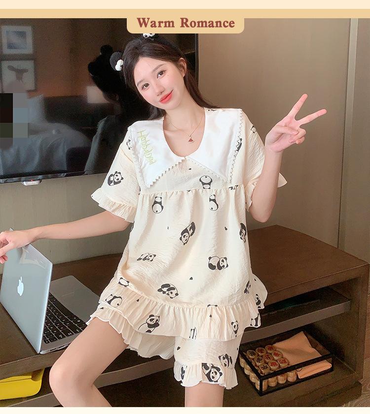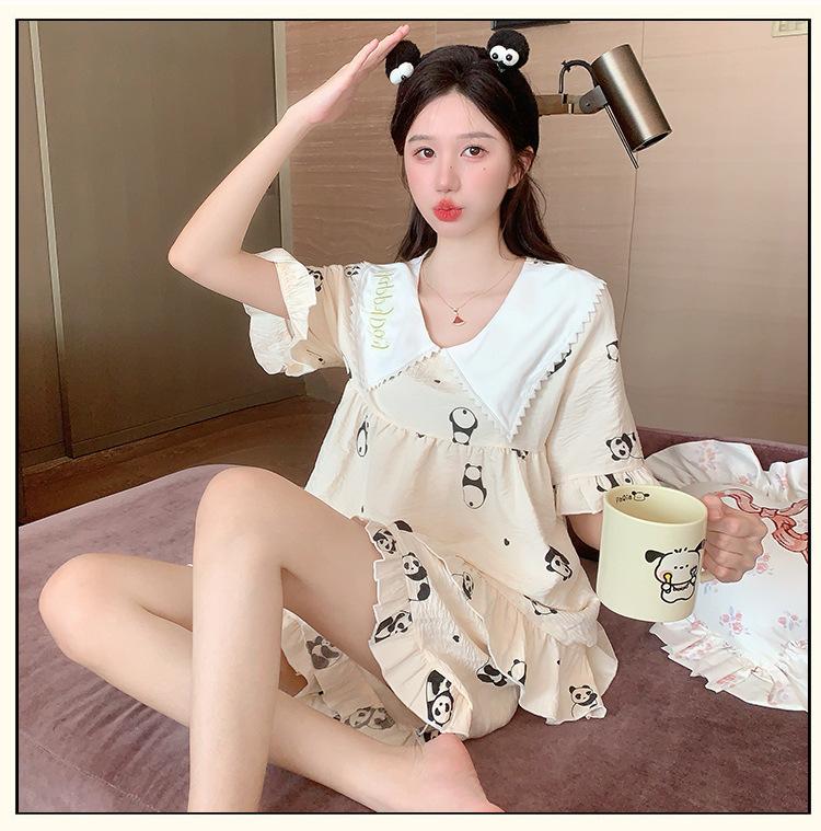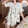 Pijamas nuevos de verano de comercio exterior para mujer, cuello de muñeca, manga corta, dulce y linda chica, estilo coreano, ropa de casa, traje que se puede usar al aire libre