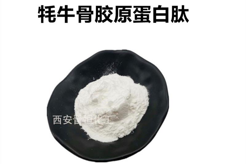 El colágeno de hueso bovino es un polvo de color amarillo claro a blanco, libre de grumos e impurezas, y tiene el olor a colágeno. Es soluble en agua, y después de la disolución completa, no hay impurezas ni precipitados.