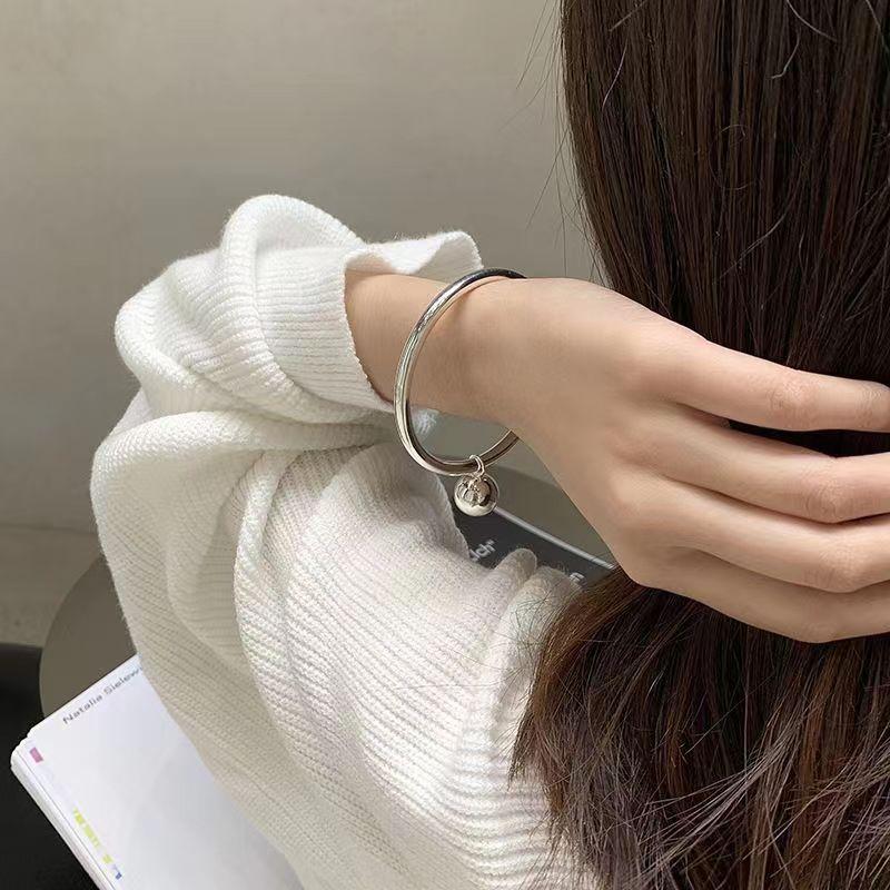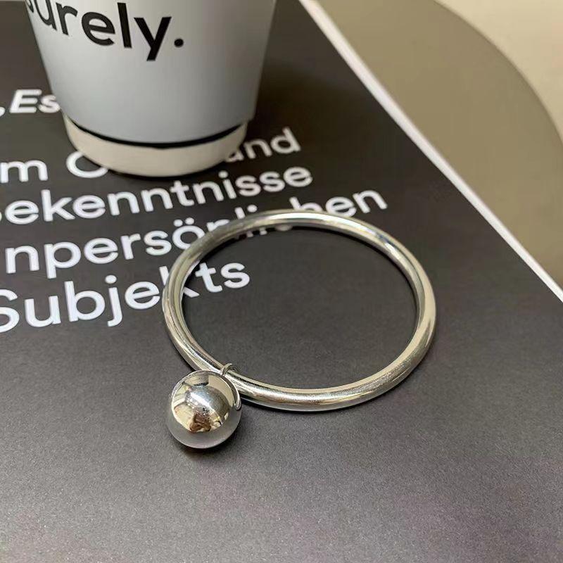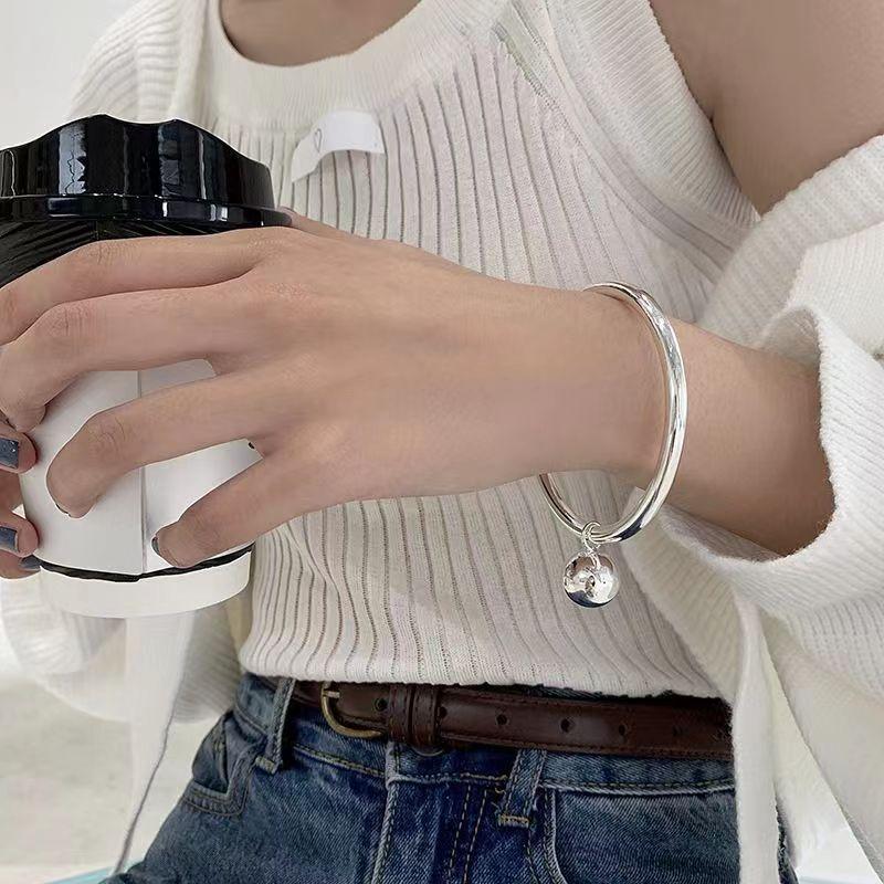 Pulsera de estilo nuevo 2024 para mujer, con bola colgante de apertura sólida y lisa, sencilla, de moda, con anillo cerrado, chapada en plata
