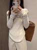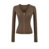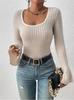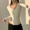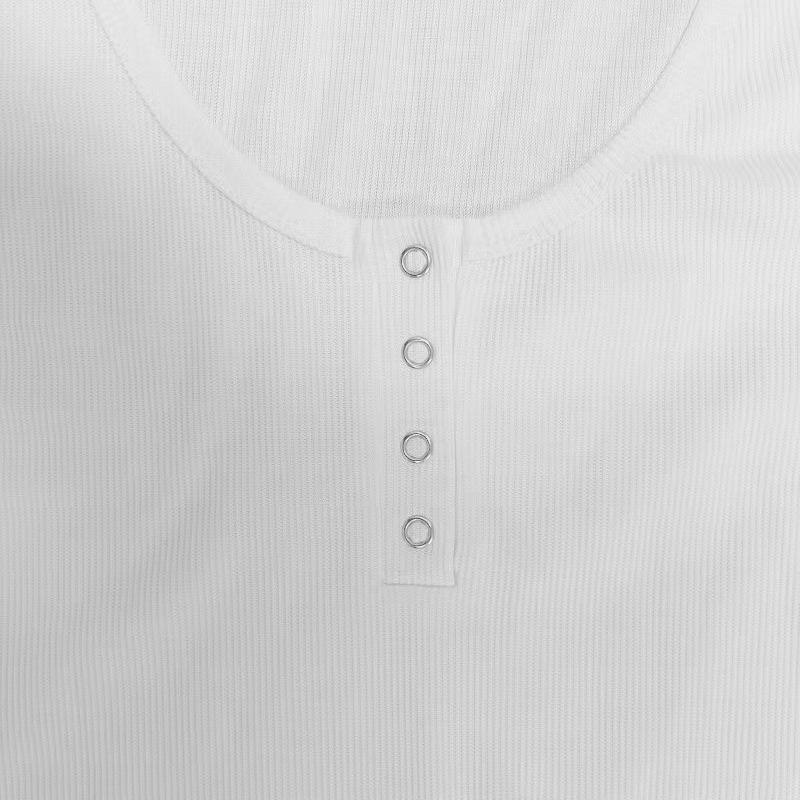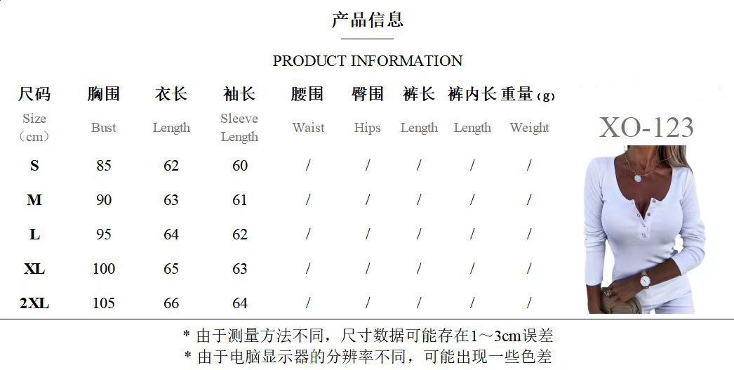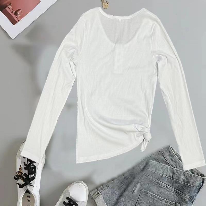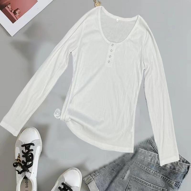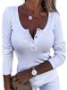 Ropa de Mujer Transfronteriza Europea y Americana para Primavera y Otoño, Camiseta de Punto de Manga Larga de Color Sólido con Cuello Henley y Botones, Top Ajustado de Canalé