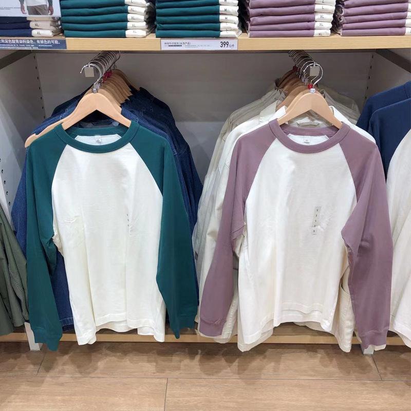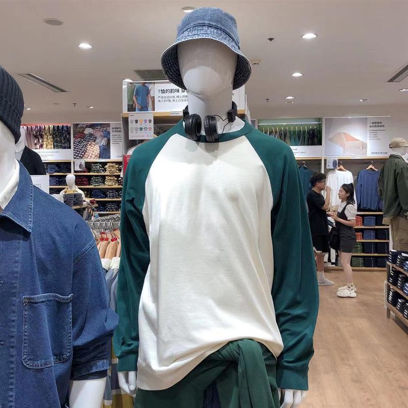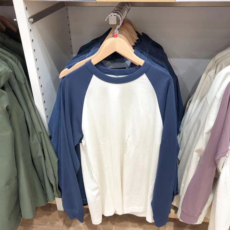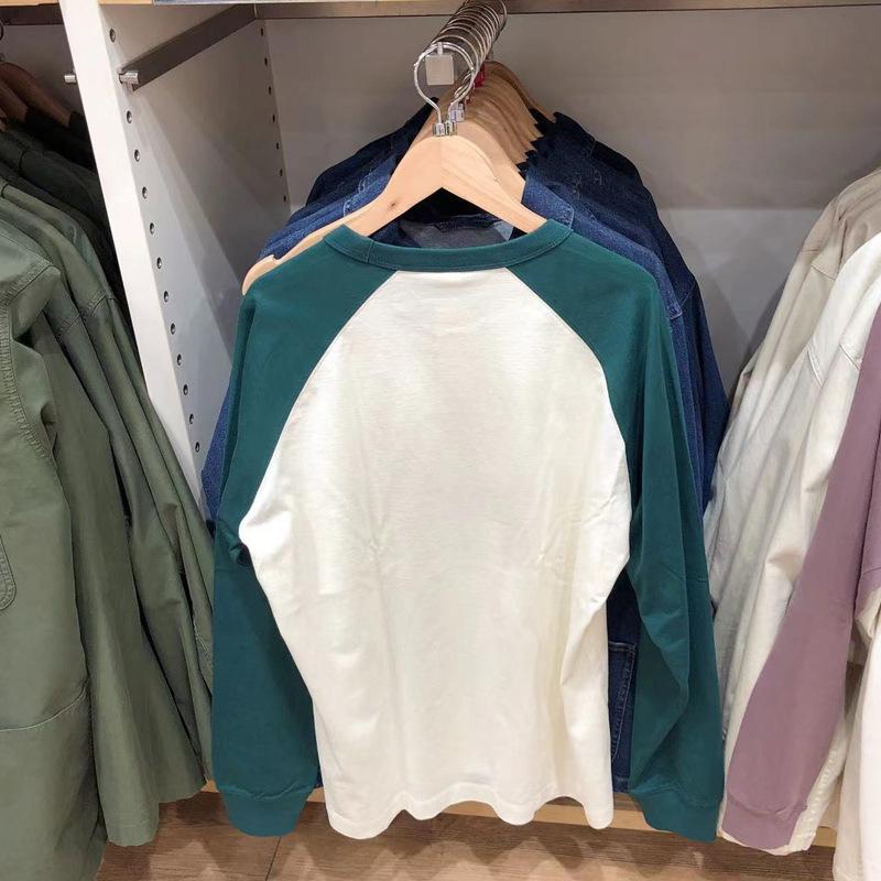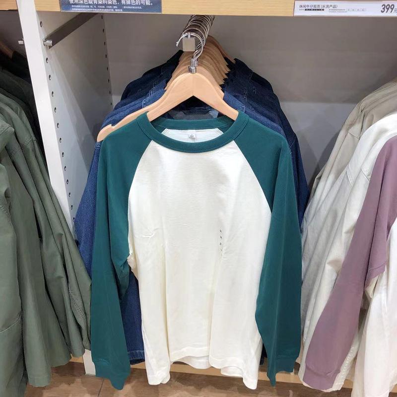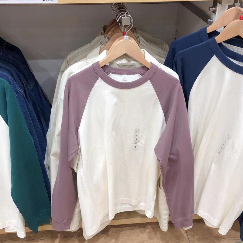 Camisetas de Manga Raglán de Otoño Casual Versátil Combinación de Colores Manga Larga Tops para Hombres y Mujeres Parejas 466721