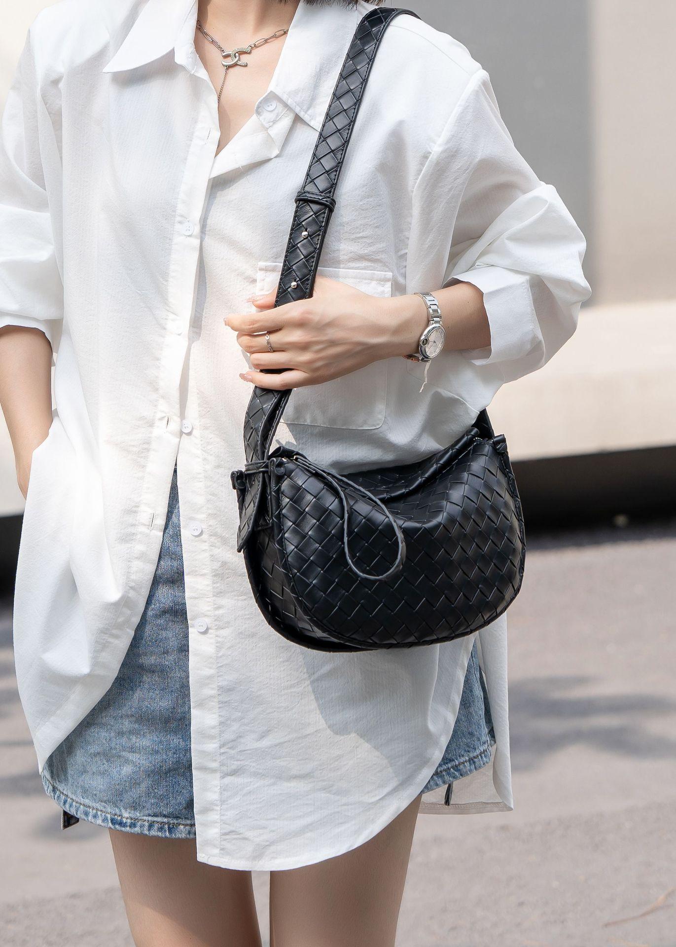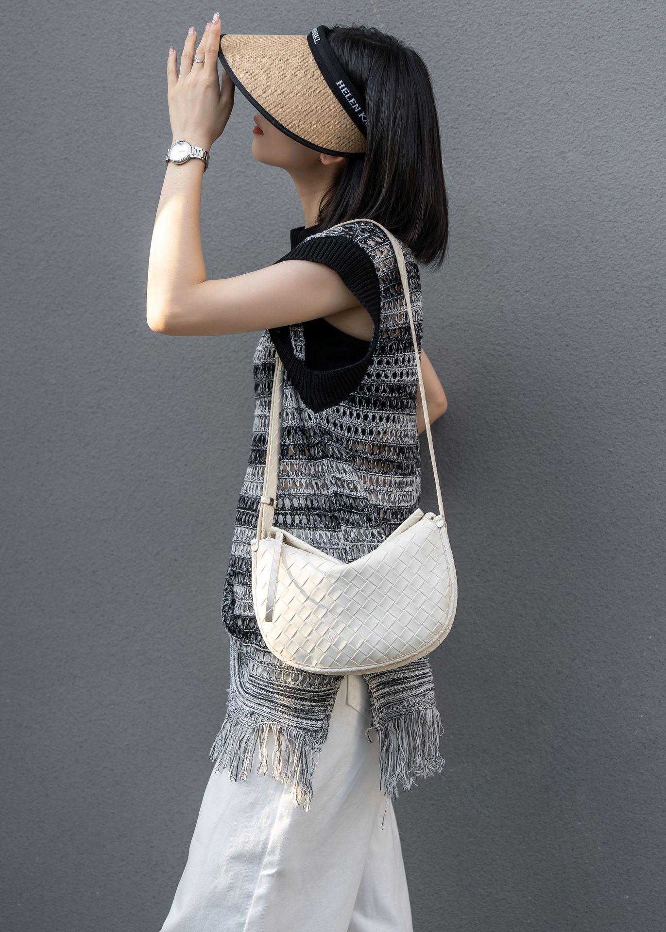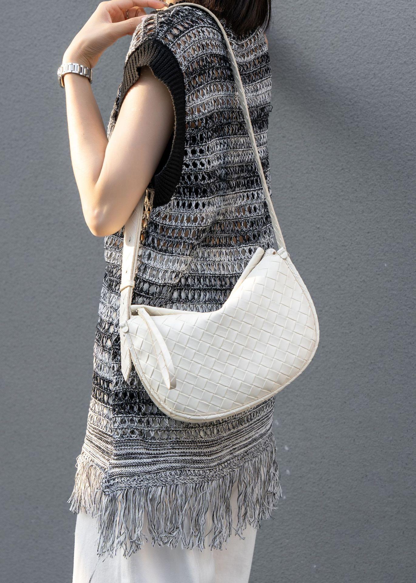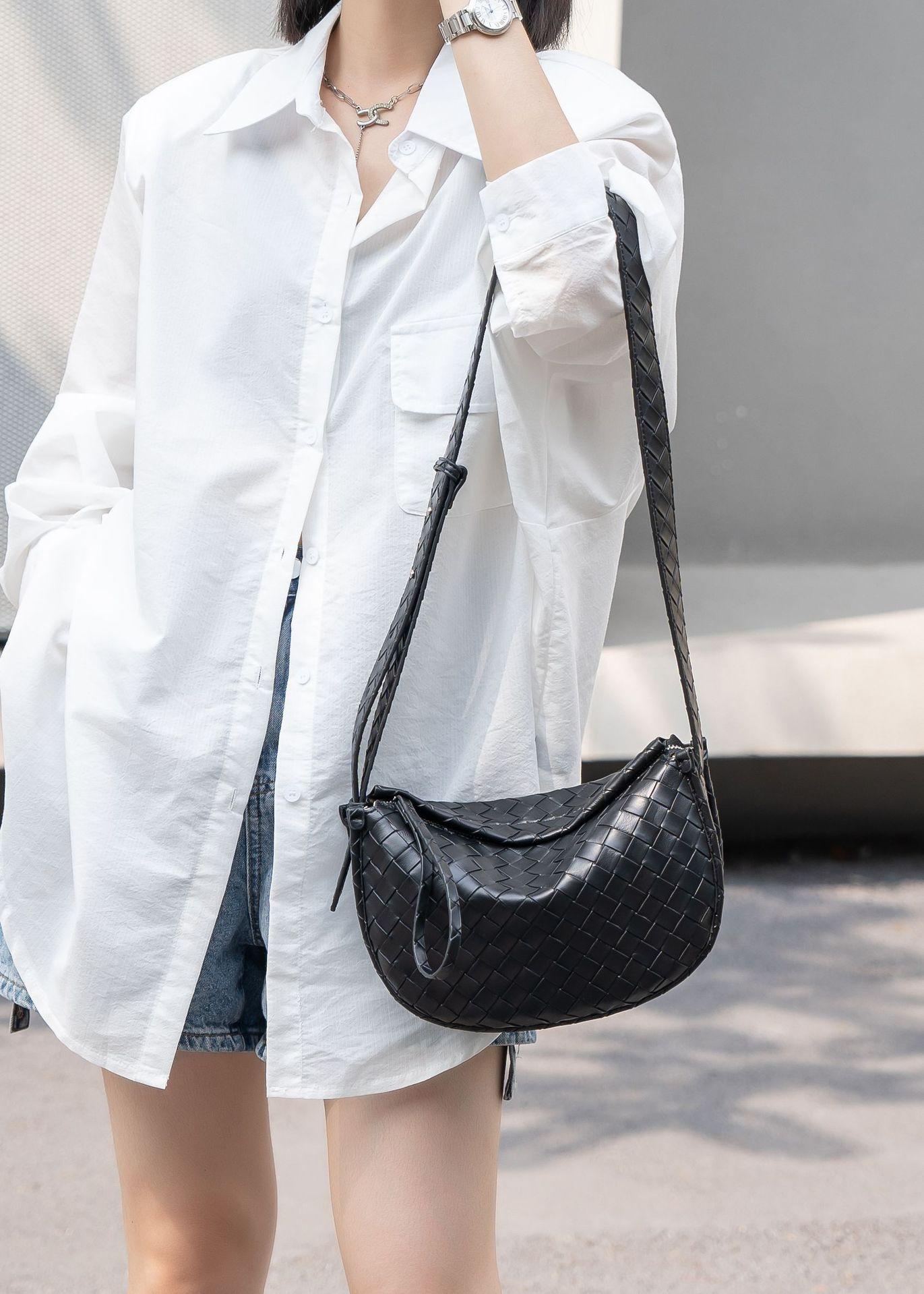 2025 Nuevo Bolso Cruzado de Hombro Único de Moda para Mujer Tejido de Piel de Vaca Bolso Dumpling de Cuero Genuino Verano Bolso Pequeño Simple y Elegante
