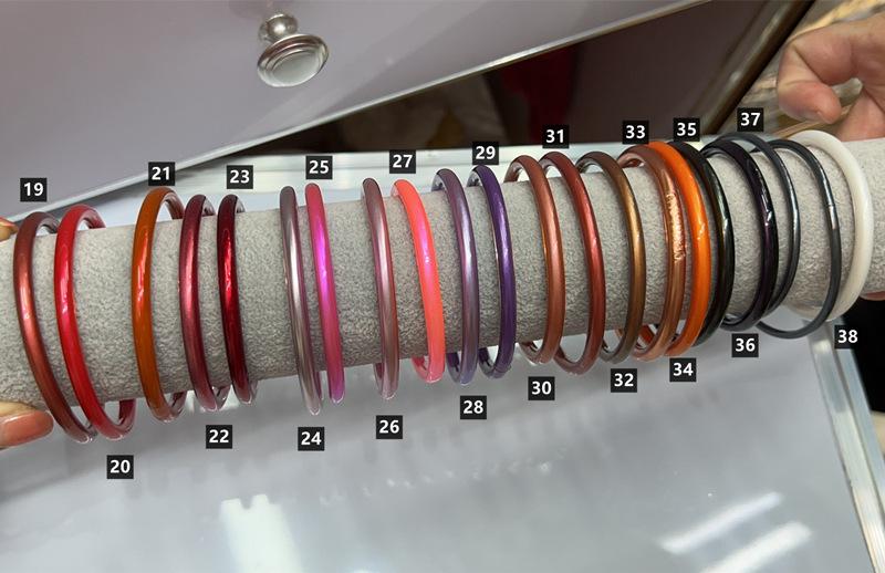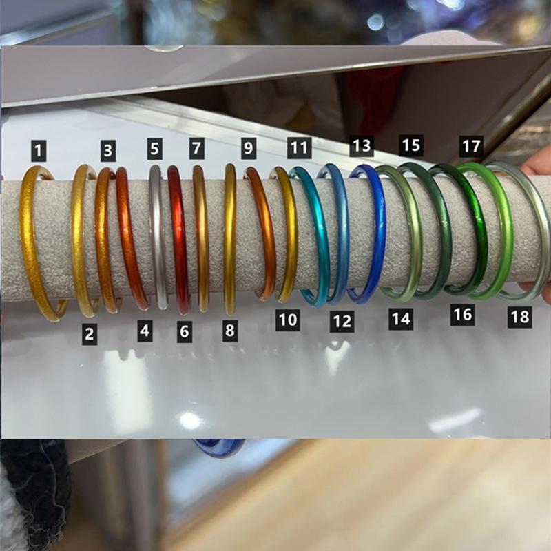 Nombre: Pulsera de silicona metálica Estilo: Retro, Punk, Moda... Material: PVC Artesanía: hecho a mano Color: verde, azul, rosa, dorado, plateado (para más colores, comuníquese con el servicio de atención al cliente) Tamaño: Diámetro interior 6-6,5 cm Peso: unos 11 gramos Embalaje: 1 pieza/bolsa opp, 12 piezas/una bolsa opp grande ------------------------------------------------------------------------------------------------------- Debido a los diferentes métodos de medición, habrá ligeras diferencias en tamaño y peso, lo que no es un problema de calidad del producto. |