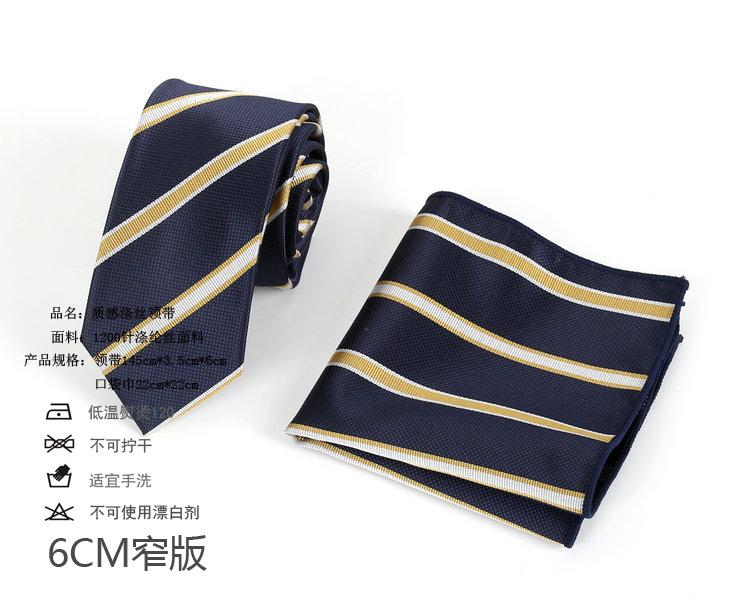 Corbata de vestir estilo coreano para hombre, corbata pequeña de 6 cm, corbata de negocios estrecha con fondo azul y rayas amarillas y blancas, juego de toallas de bolsillo.